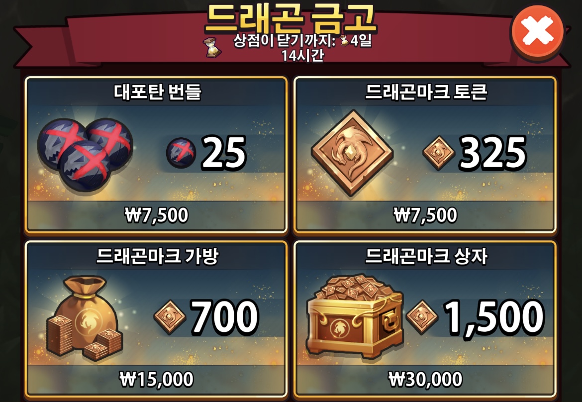 대포탄 번들은 드래곤 침공 이벤트에만 유료로 구매할 수 있는데 개당 +25% 전투력 적용됨.
