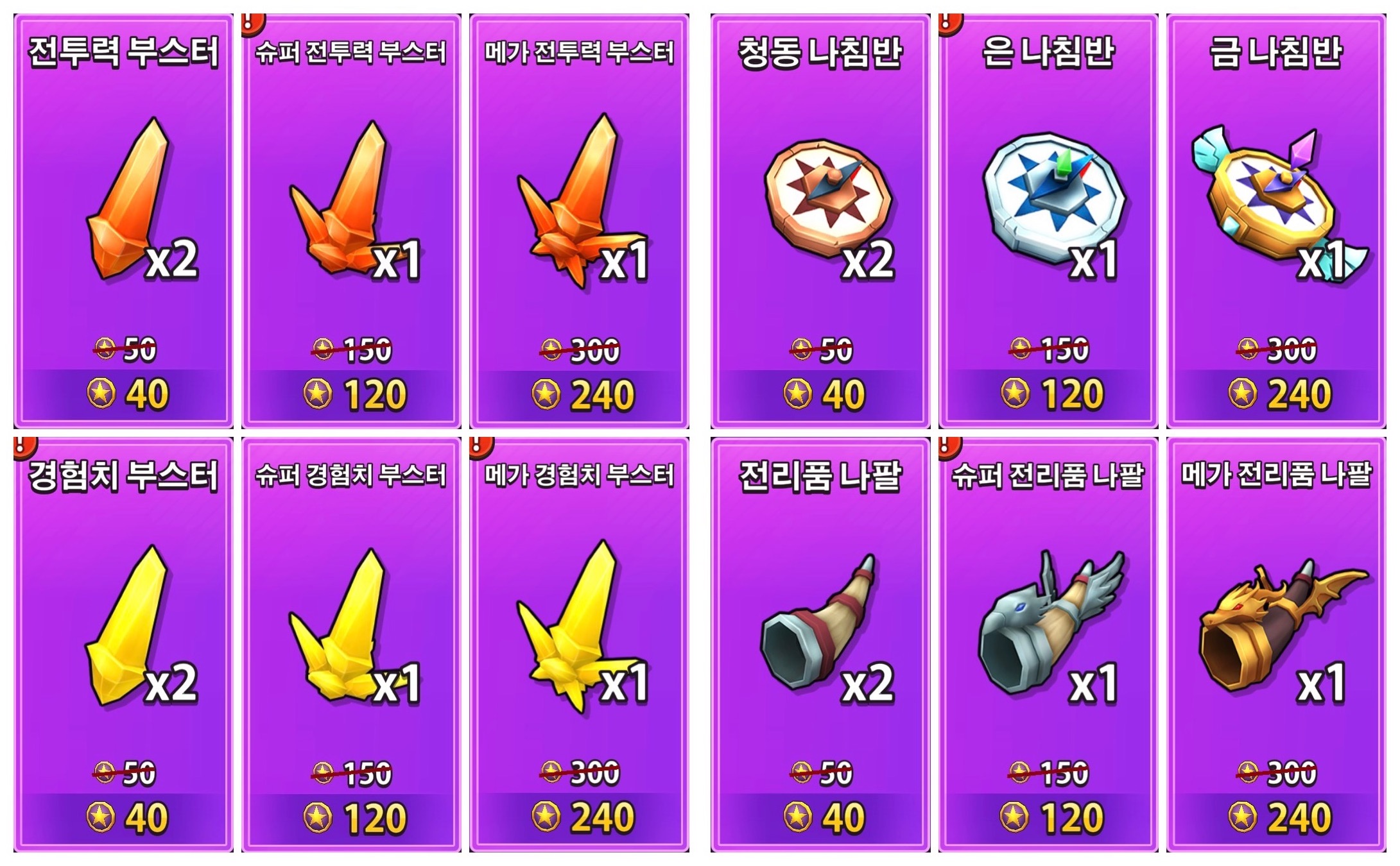 행운 지구 상점에서 판매하는 모든 종류의 부스트는 가격과 효율이 동일함.