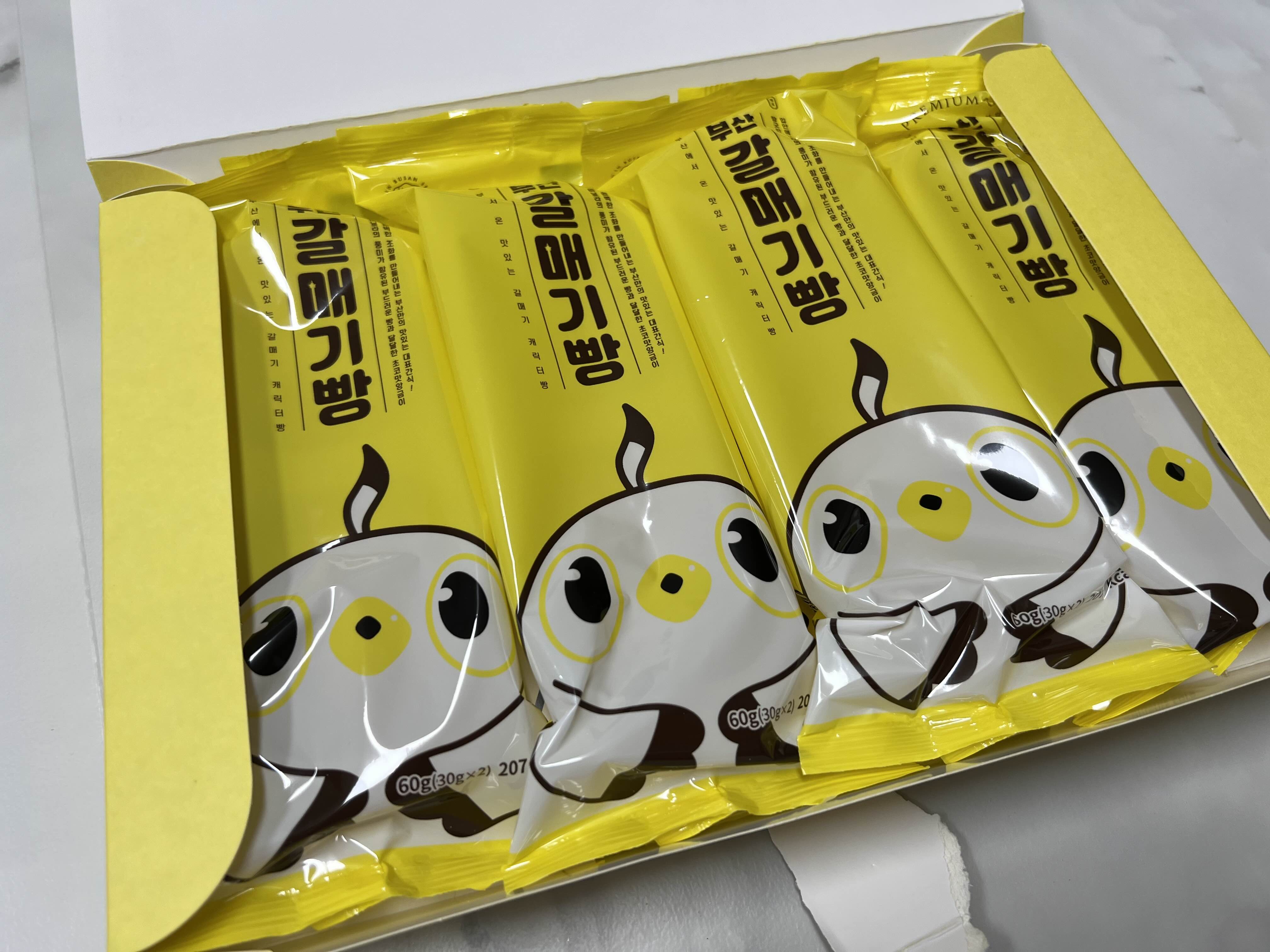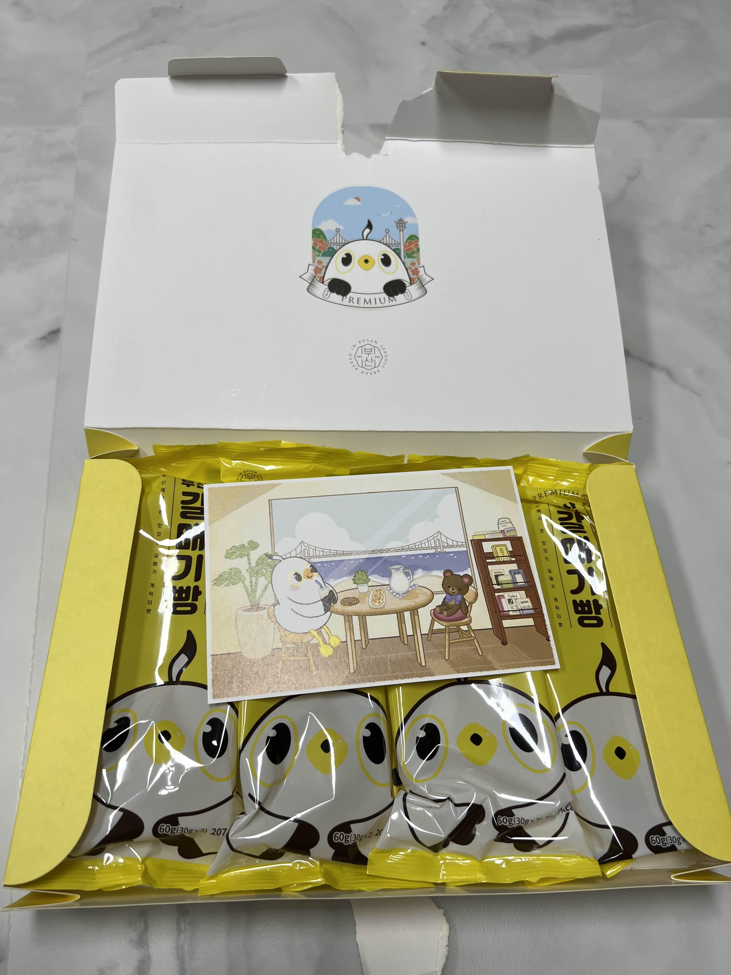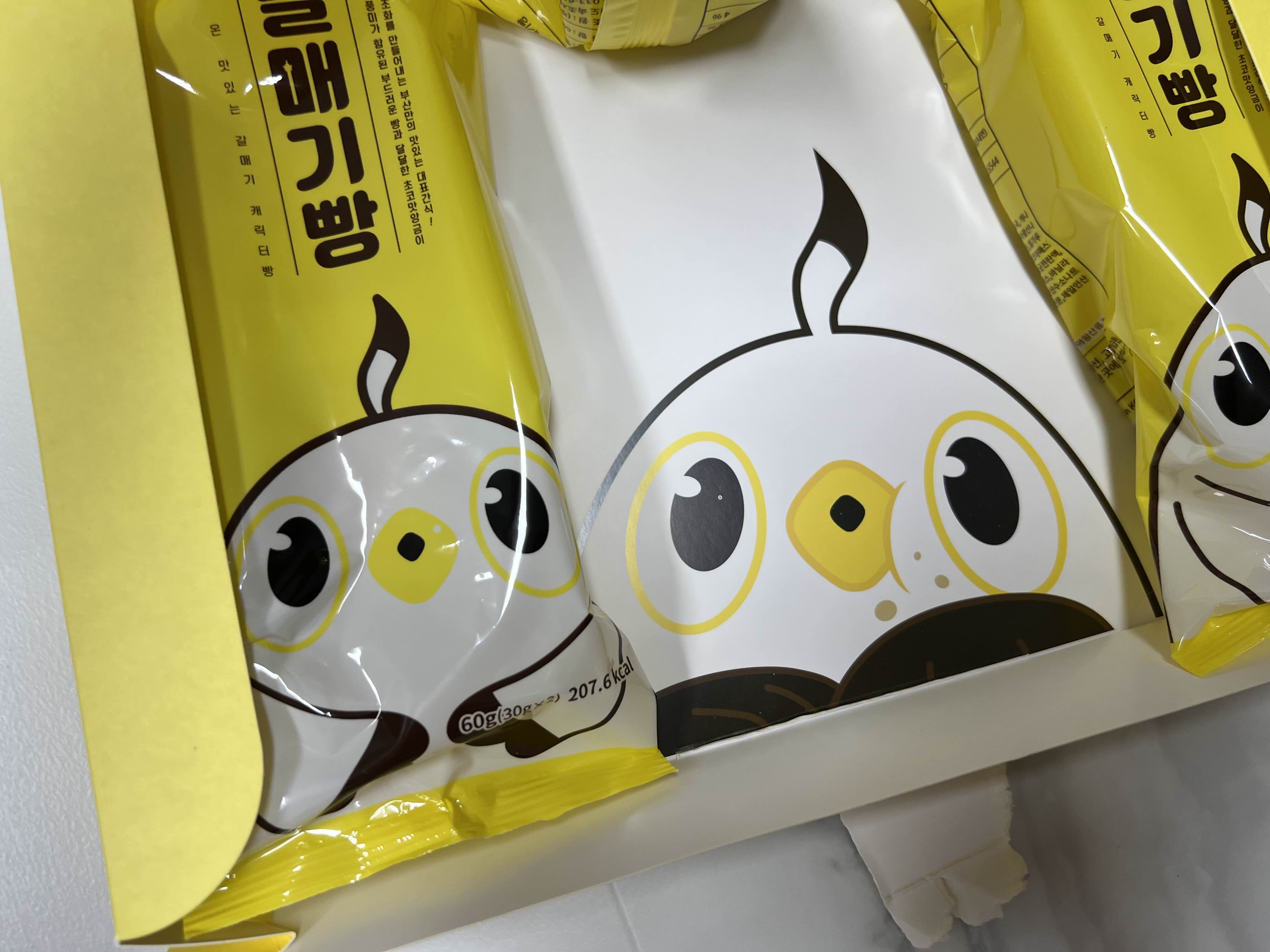귀엽게 포장된 갈매기빵이 네 봉지 들어있습니다.