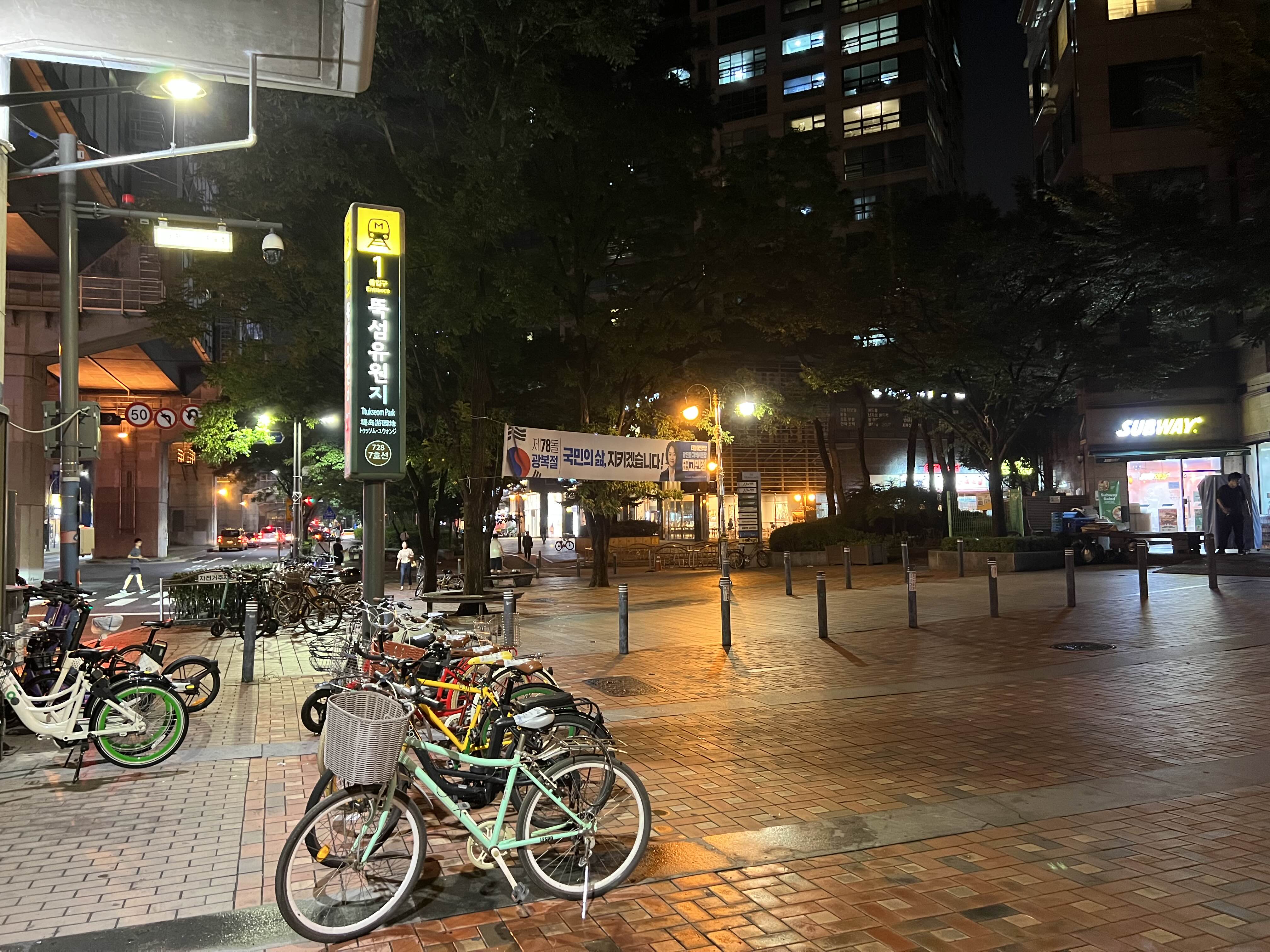 평화로운 뚝섬유원지역 1번 출구 앞도 마찬가지.