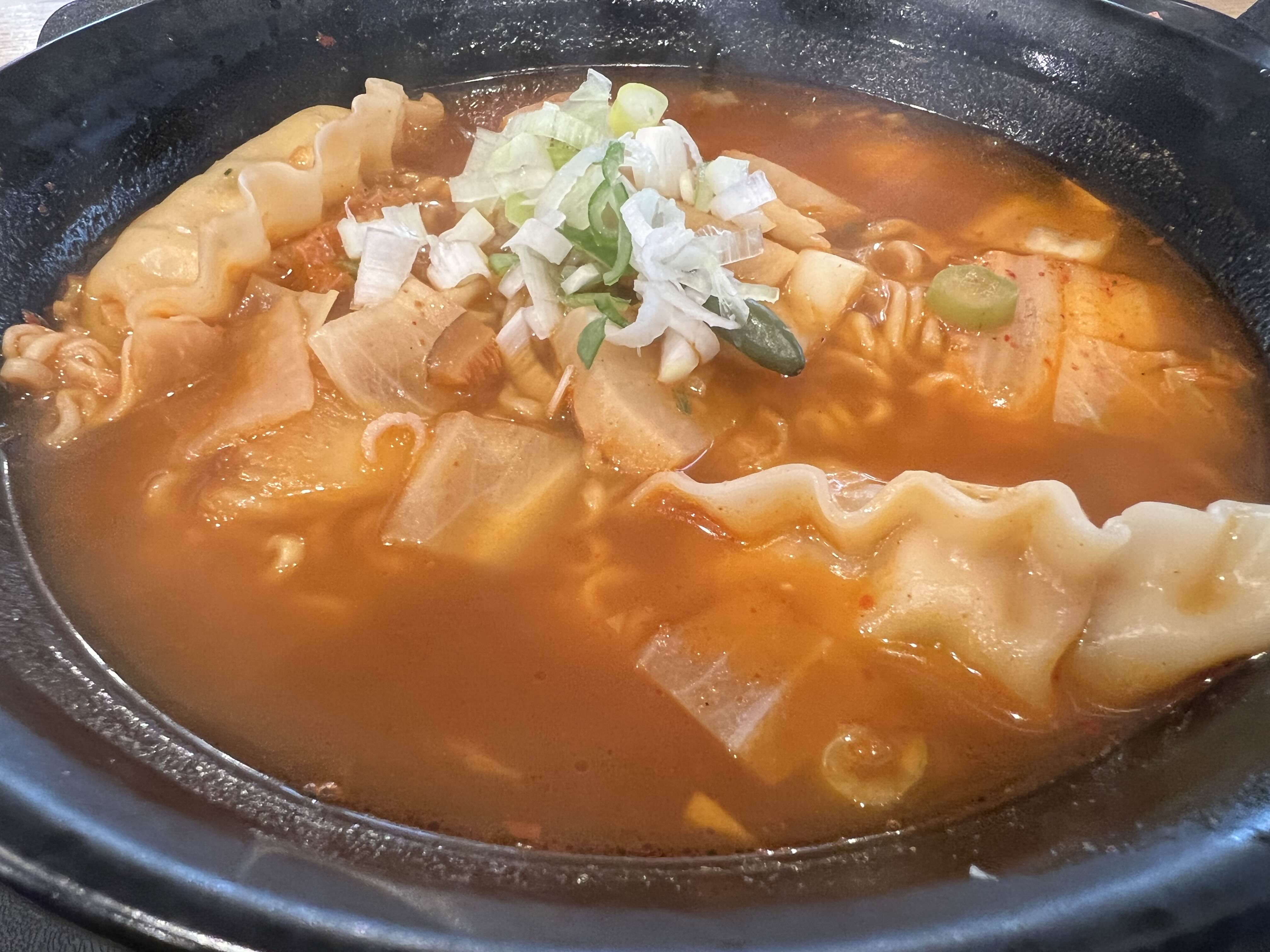 곱게 썰어 올려진 파와 적당한 크기로 썰어진 무김치, 배추김치가 잘 조화로웠습니다. 메뉴에 안내되어있던 맛있게 먹는 방법대로 먹었는데, 만두를 터뜨려 라면 국물에 담궈 입으로 쏙 하니 크으.. 김치라면 국물과 만두의 육수가 한데 어우러져 얼큰하면서도 꽉찬 고기맛이 일품이었습니다. 그저 매운맛이 아닌 조화롭게 얼큰한 맛. 단지 만두가 두 개 뿐이었단게 아쉬웠습니다.