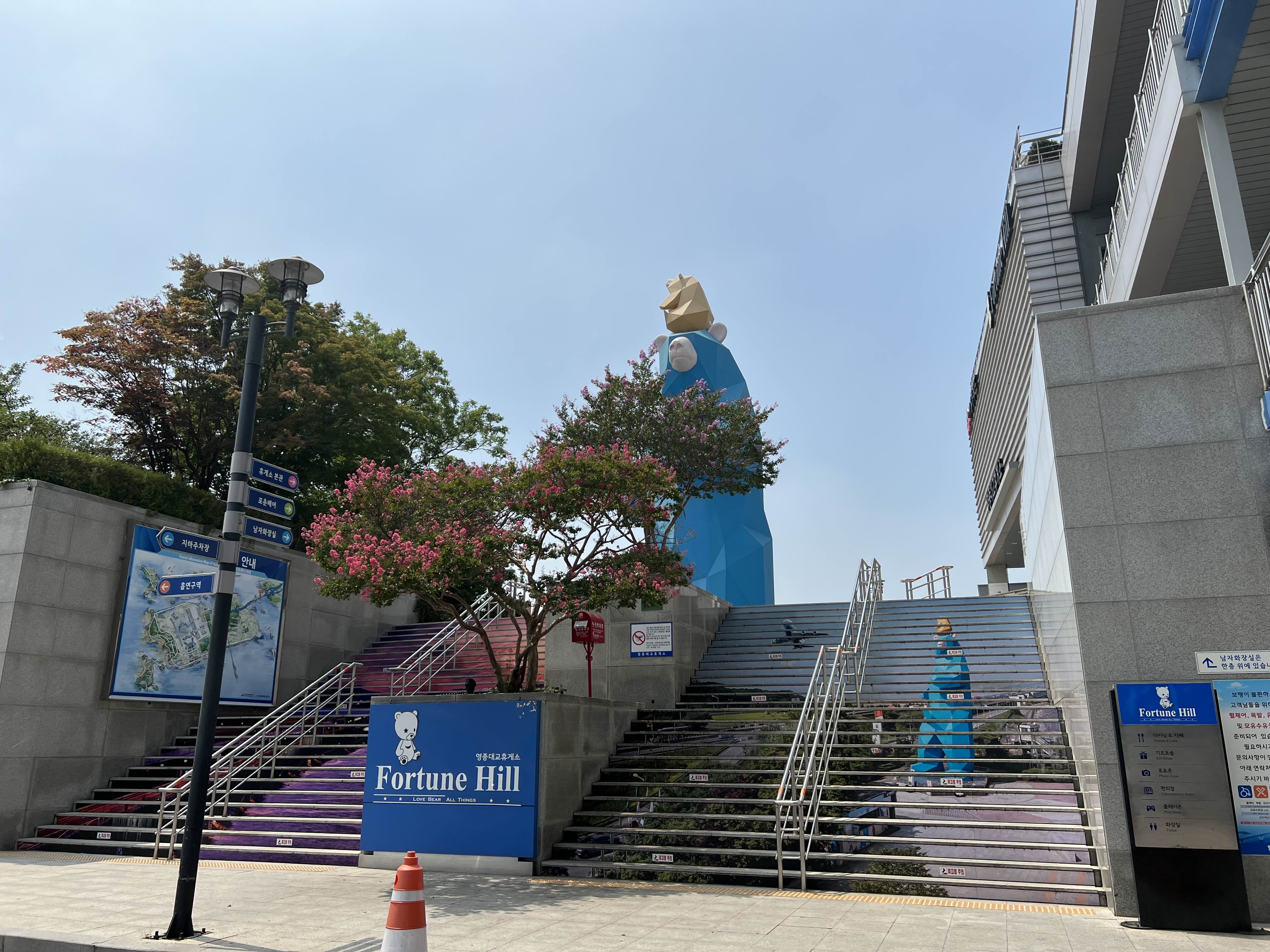 계단 아래에서 보이던 파랗고 커다란 녀석의 정체! 곰!! 영종도에 곰이 나타났습니다!!! 날이 너무 더워 곰을 가까이서 볼 엄두는 나지 않았습니다.