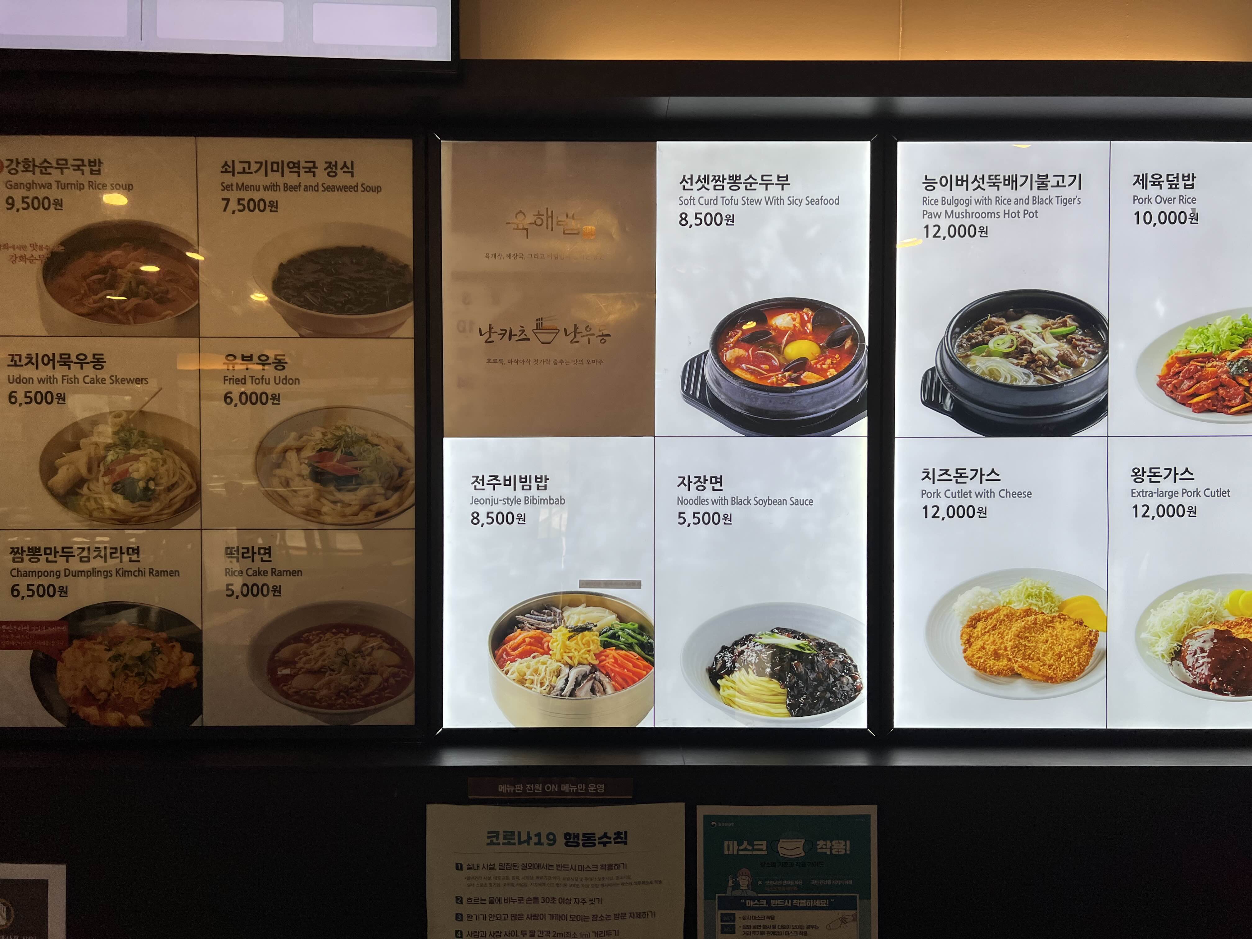 제법 다양한 메뉴가 있네요. 먼 곳으로 떠나는 자들을 위해 한국적인 음식이 많이 있는걸로 보입니다. 메뉴 이름만 달랑 있지 않고 커다란 사진이 함께 있어서 더욱 식욕을 자극합니다.
