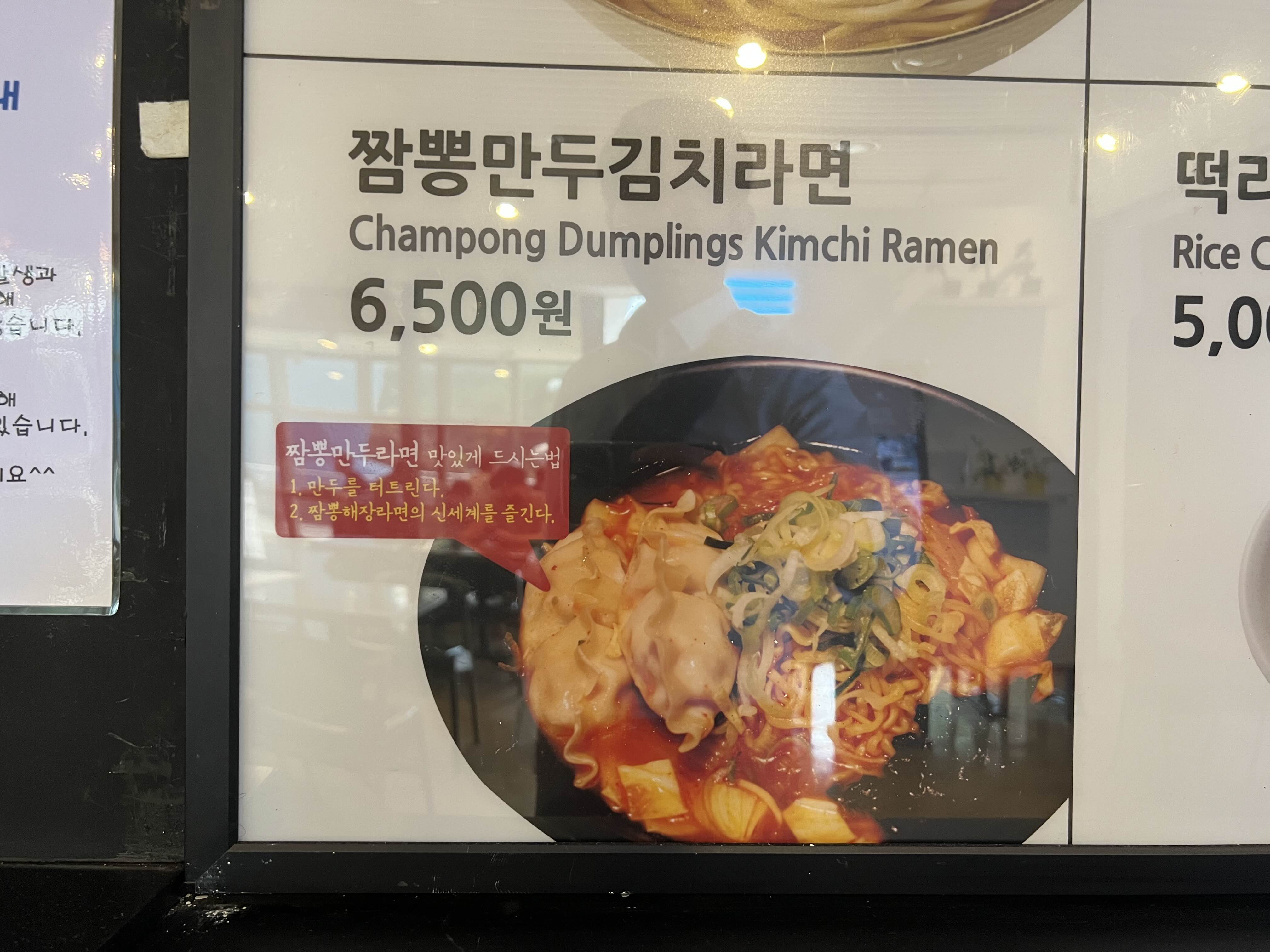 잠시 한국을 떠나게 될 지인은 짬뽕만두김치라면을 선택했습니다. 메뉴 사진속에 맛있게 먹는 방법이 친절히 나와있습니다.