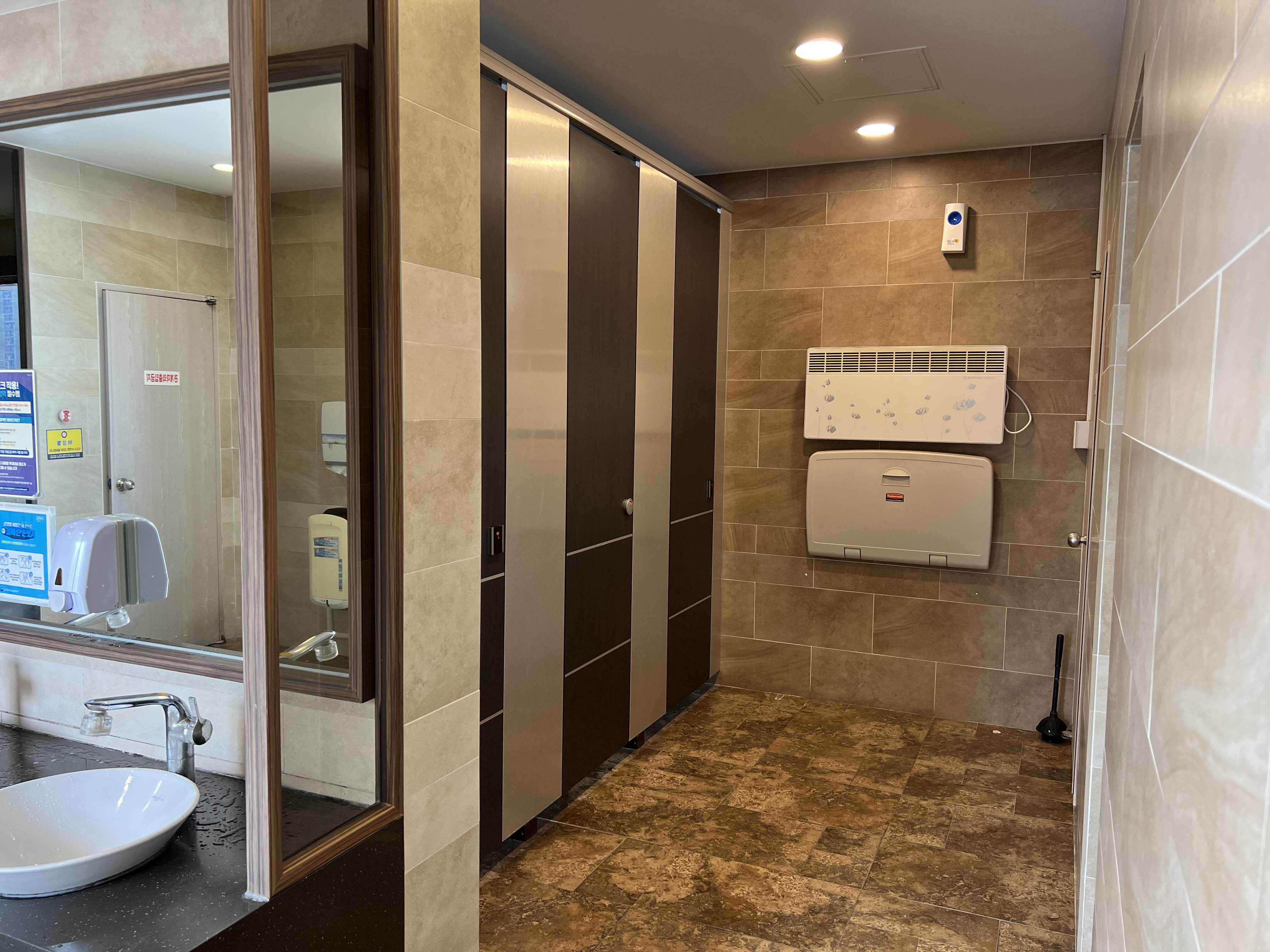 대변기 칸 세 곳에 기저귀 교환대도 있고