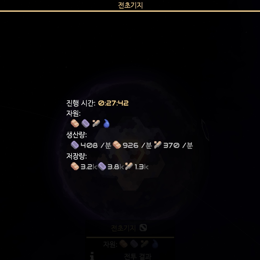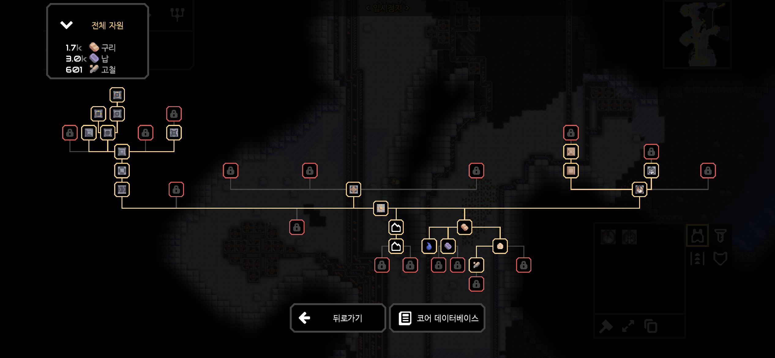 전초기지 미니맵. 자원은 대부분 구리이며 섹터의 곳곳에 위치하고 있습니다.