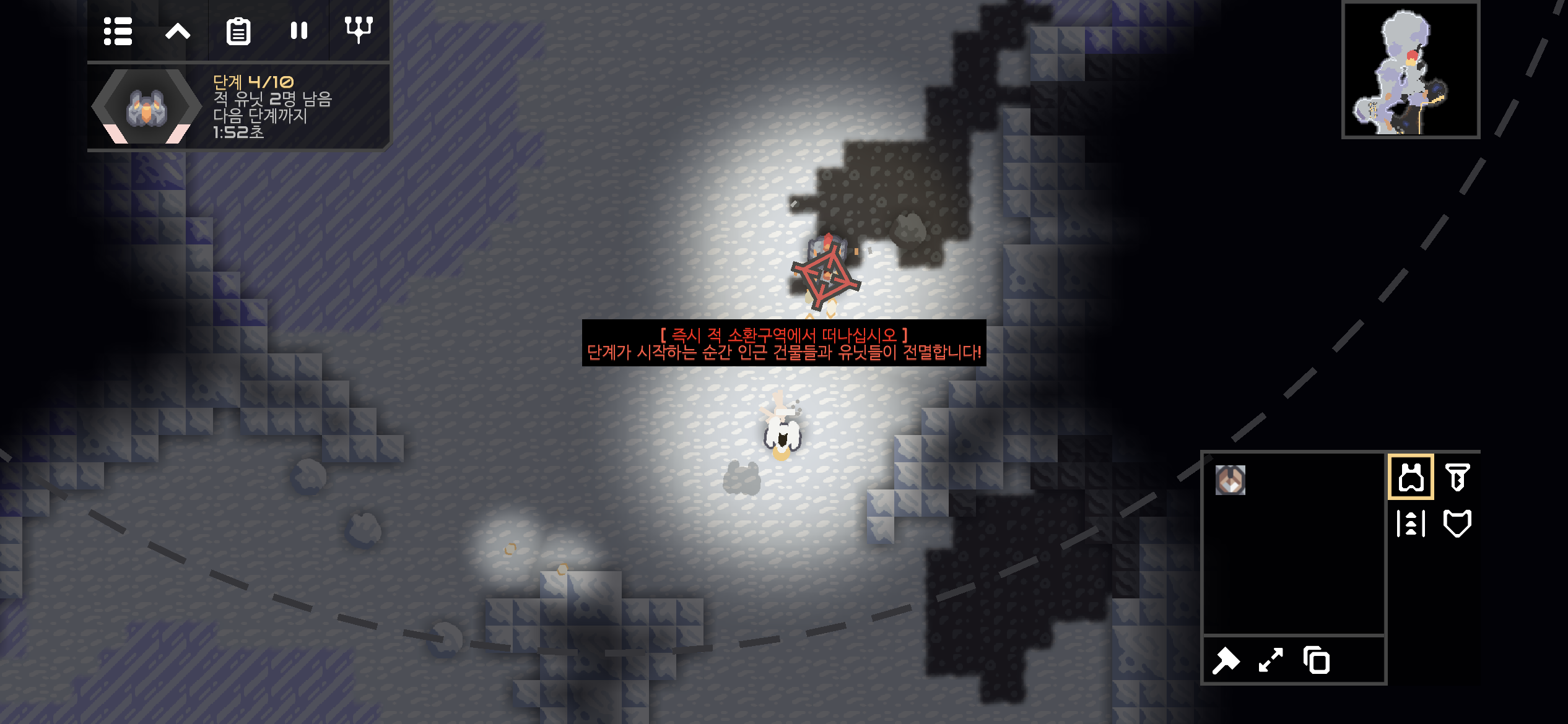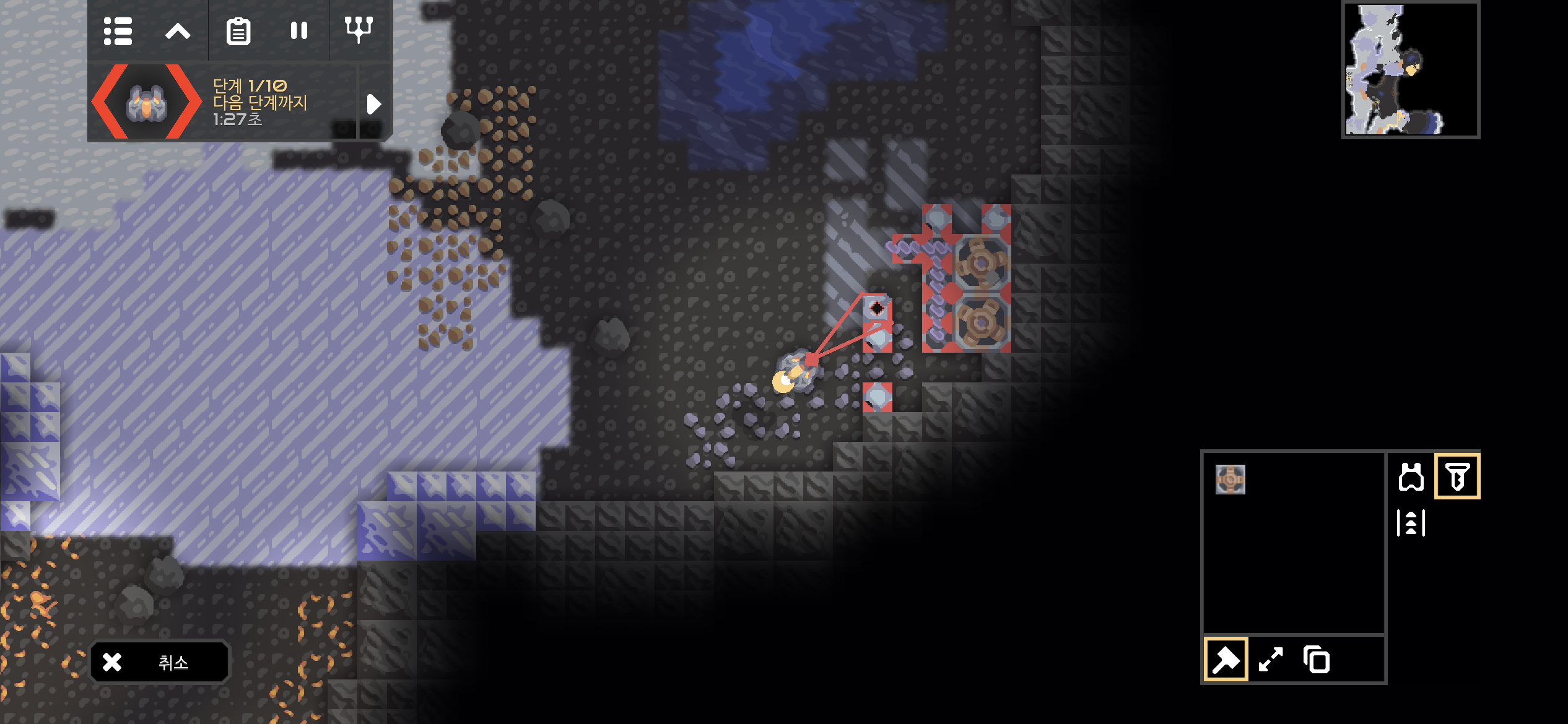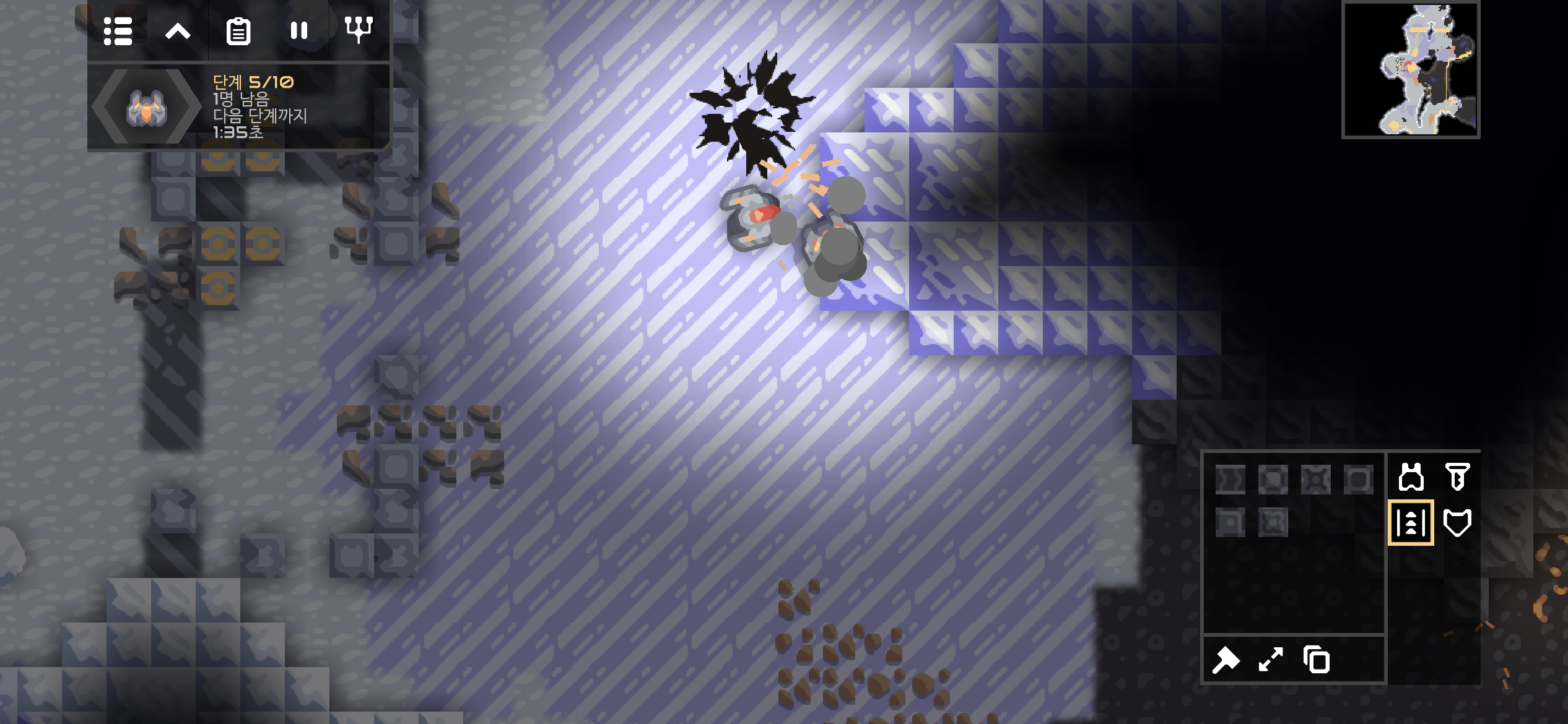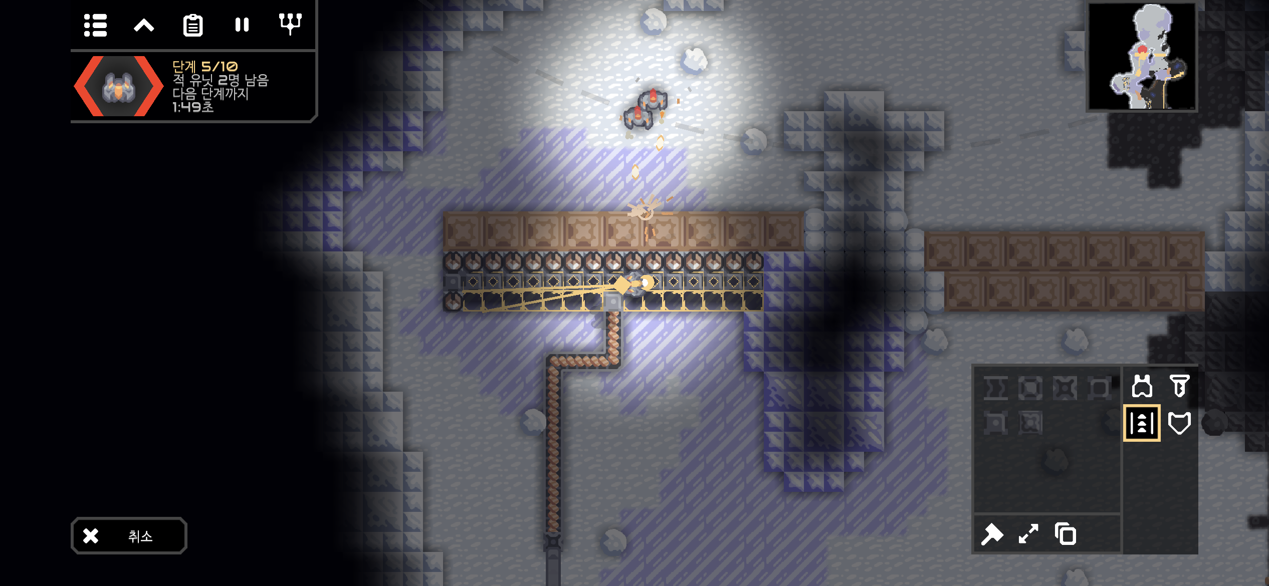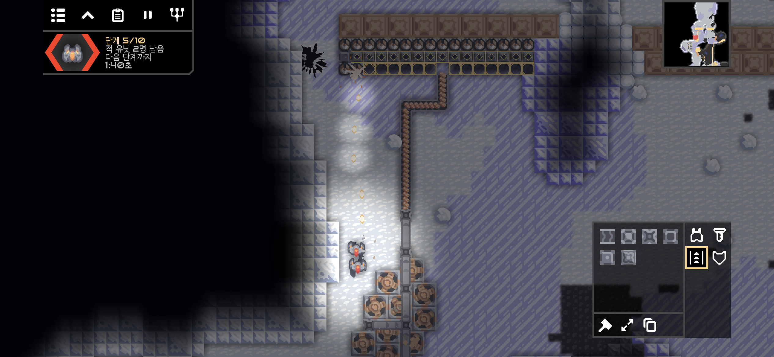 디펜스 라인을 만들던 도중 등장한 적 유닛. 구리가 부족해 건설이 지연되고 있는 상황에서 적 유닛이 등장했습니다.