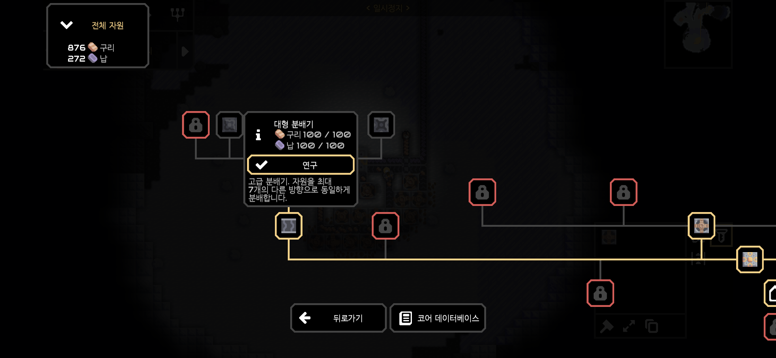 적을 처리하는 동안 자원이 쌓였네요. 대형 분배기를 연구합니다.