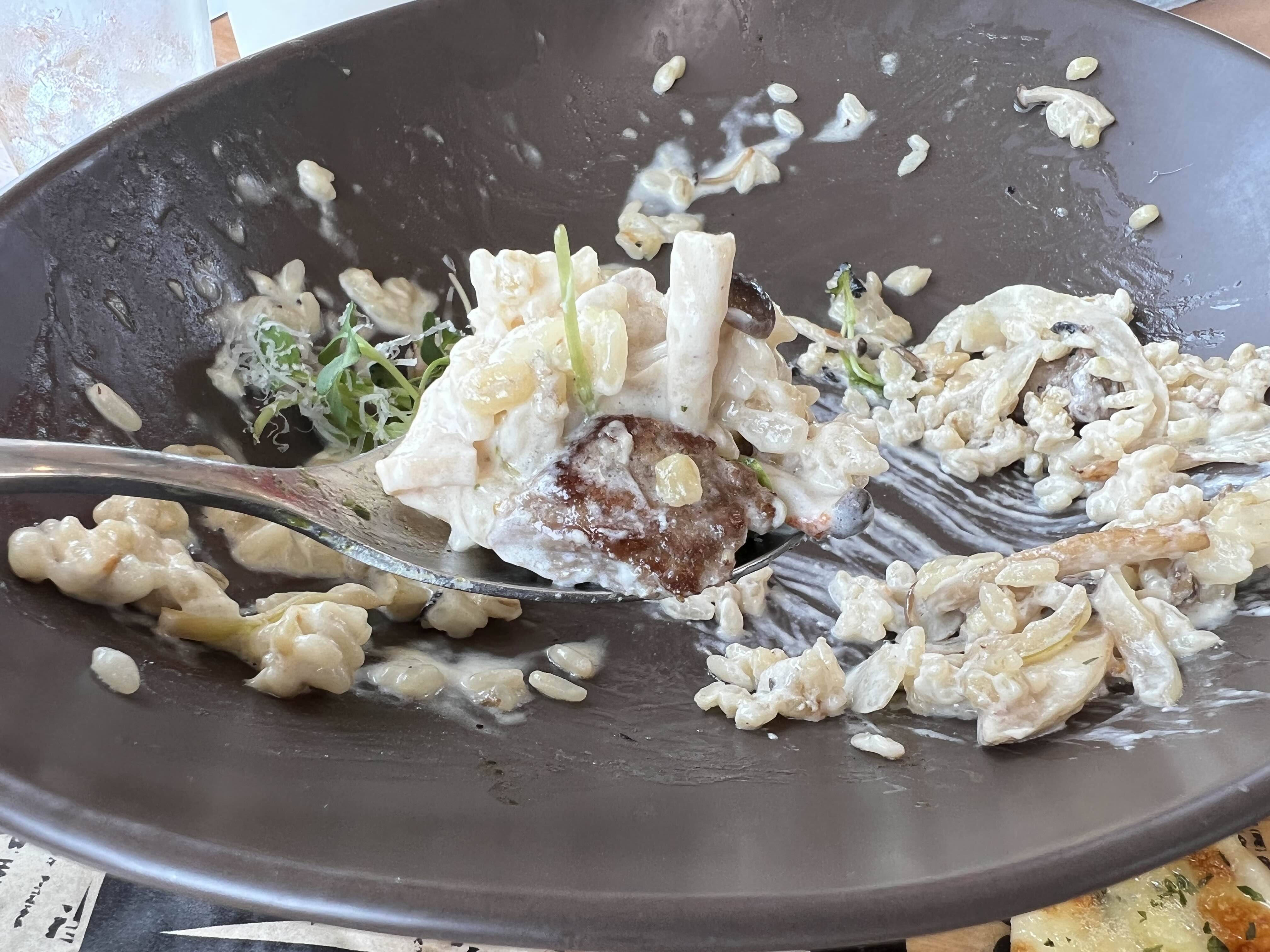진한 바질의 향이 파스타와 제법 잘 어울립니다. 바질과 크림이 잘 섞여 파스타중 가장 맛있었습니다.