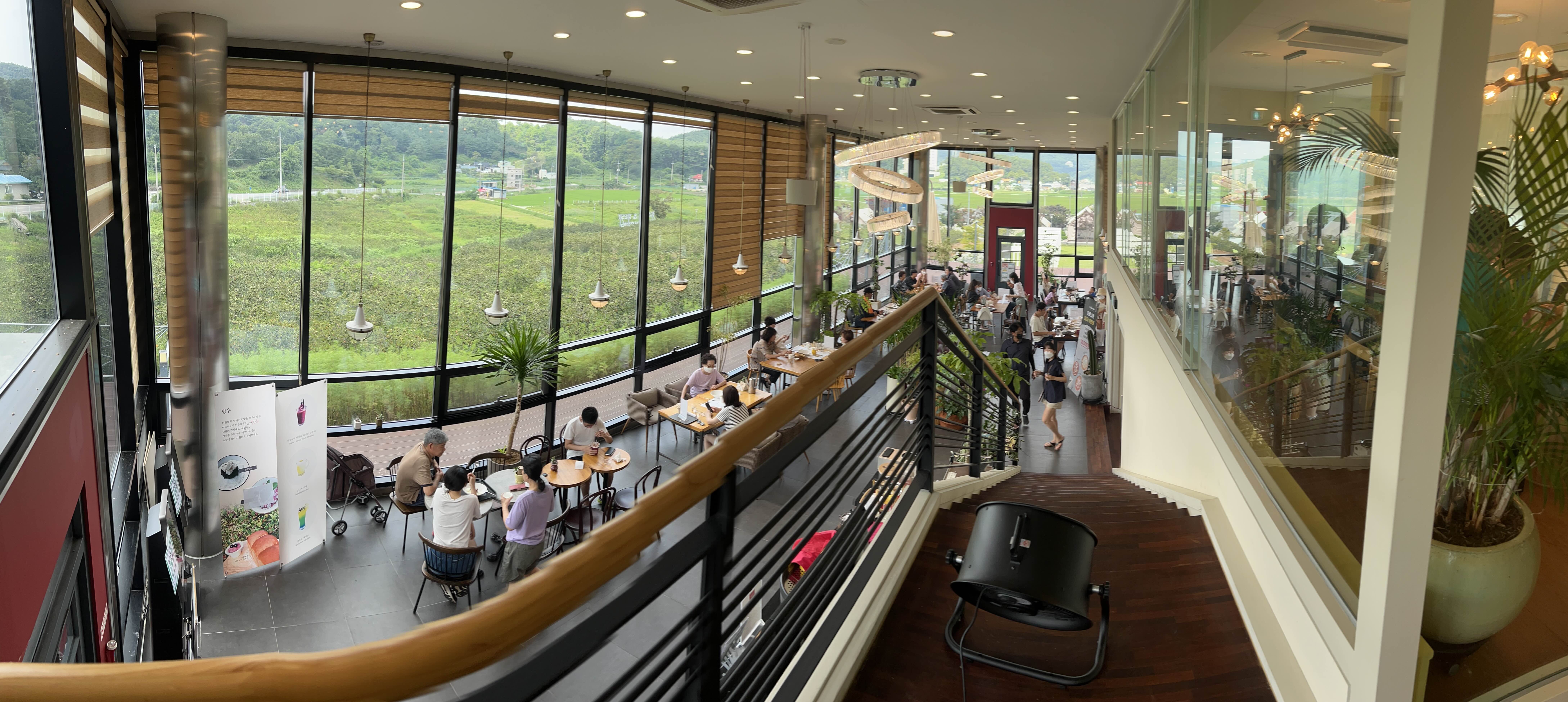 넓디넓은 아로니아 밭에 쌓여있습니다. 그리고 넓디넓은 잔디밭 위에 식당이 있습니다. 글램핑장이 같이 있고 아주 넓은 주차 공간이 있습니다. 저 먼곳 까지 탁 트인 시야가 눈을 시원하게 합니다. 숨을 깊게 들이쉬면 아로니아의 향이 느껴지는듯도 합니다.