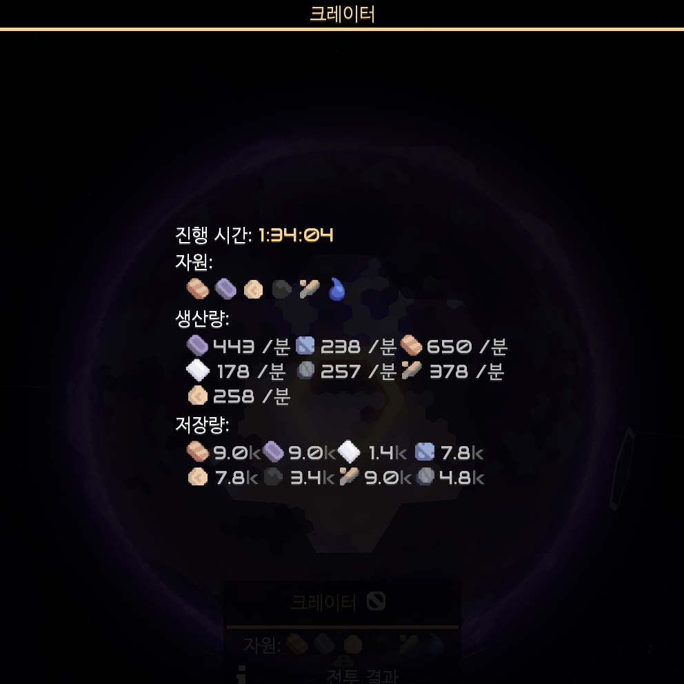 이로써 크레이터를 점령하고 코어의 업그레이드까지 무사히 마쳤습니다. 흑연 공장, 실리콘 공장, 강화 유리 공장 등 가동중인 생산 시설들이 제법 있습니다.