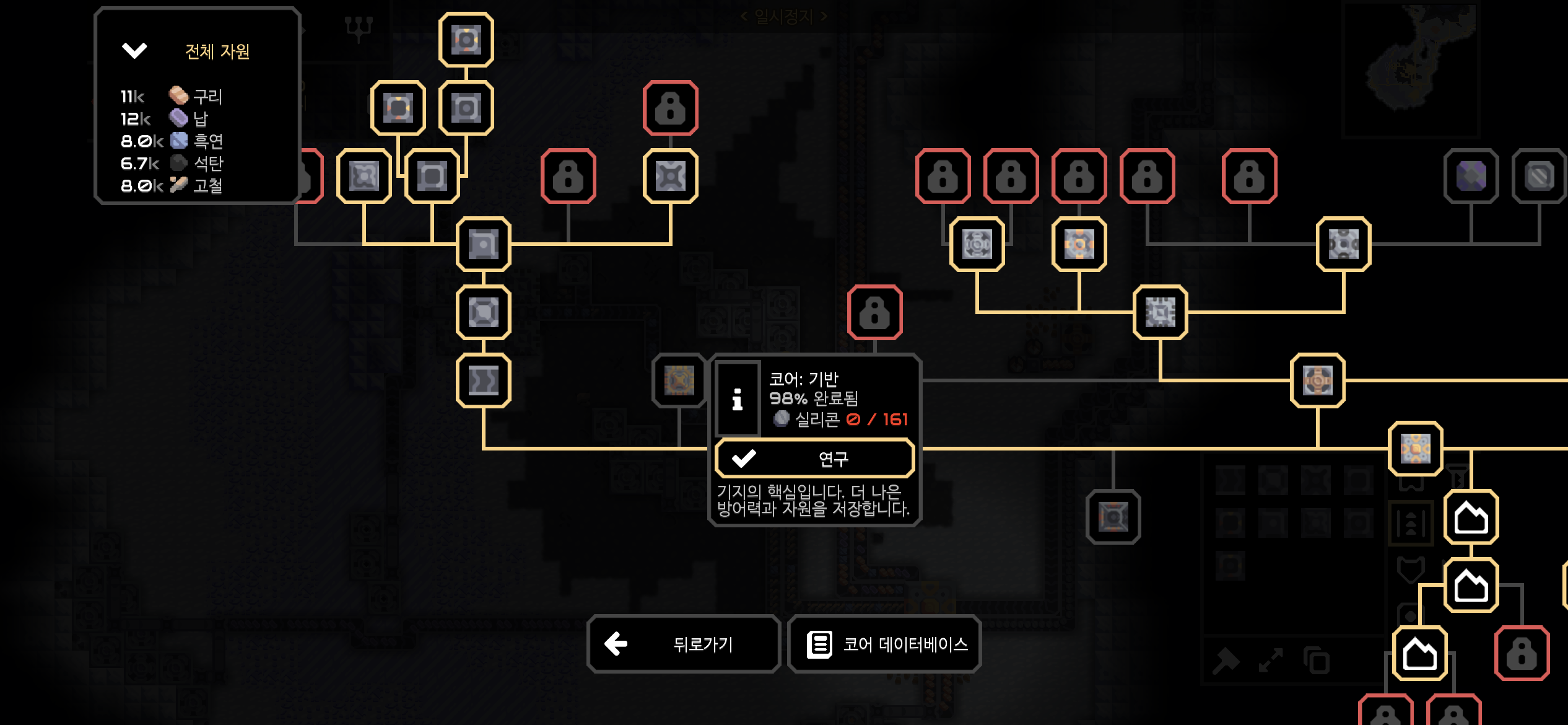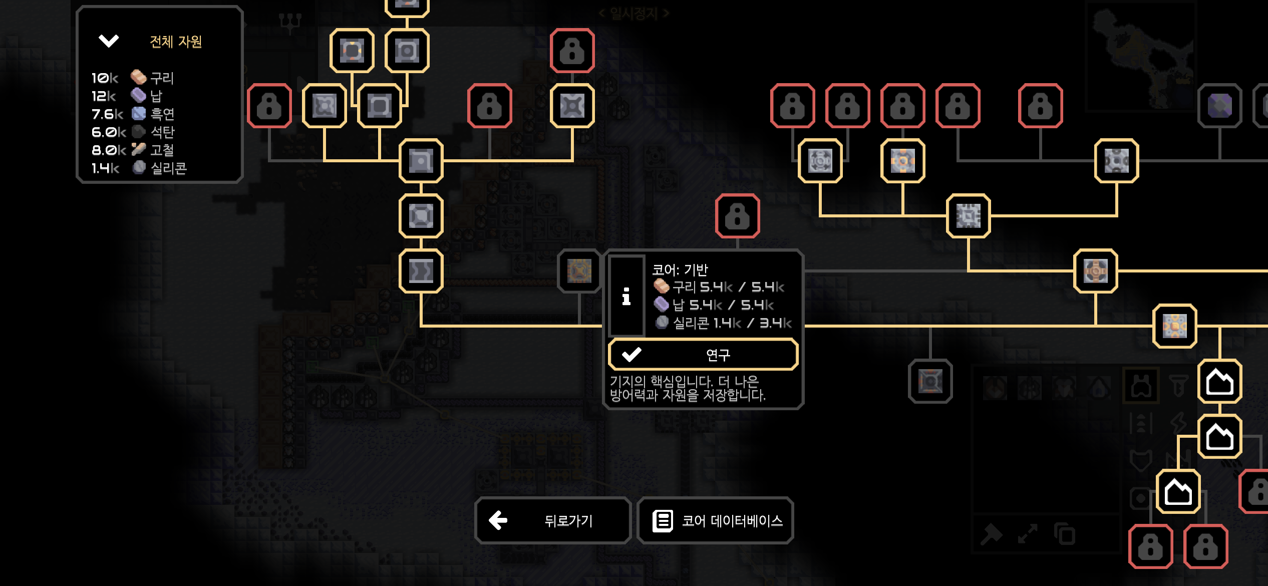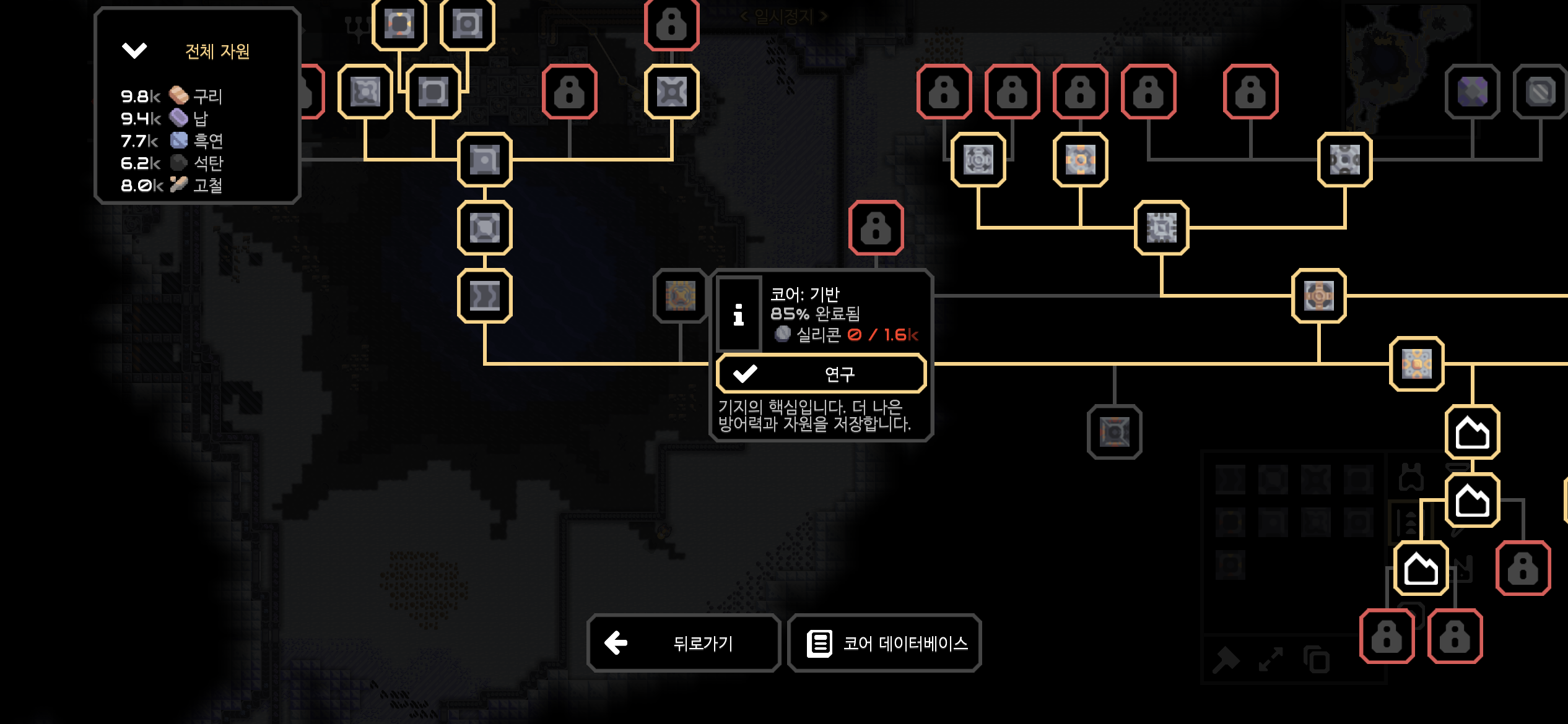 연구 목록에 코어: 기반 항목인 코어 업그레이드가 있네요. 연구 진행에 많은 실리콘이 필요합니다.