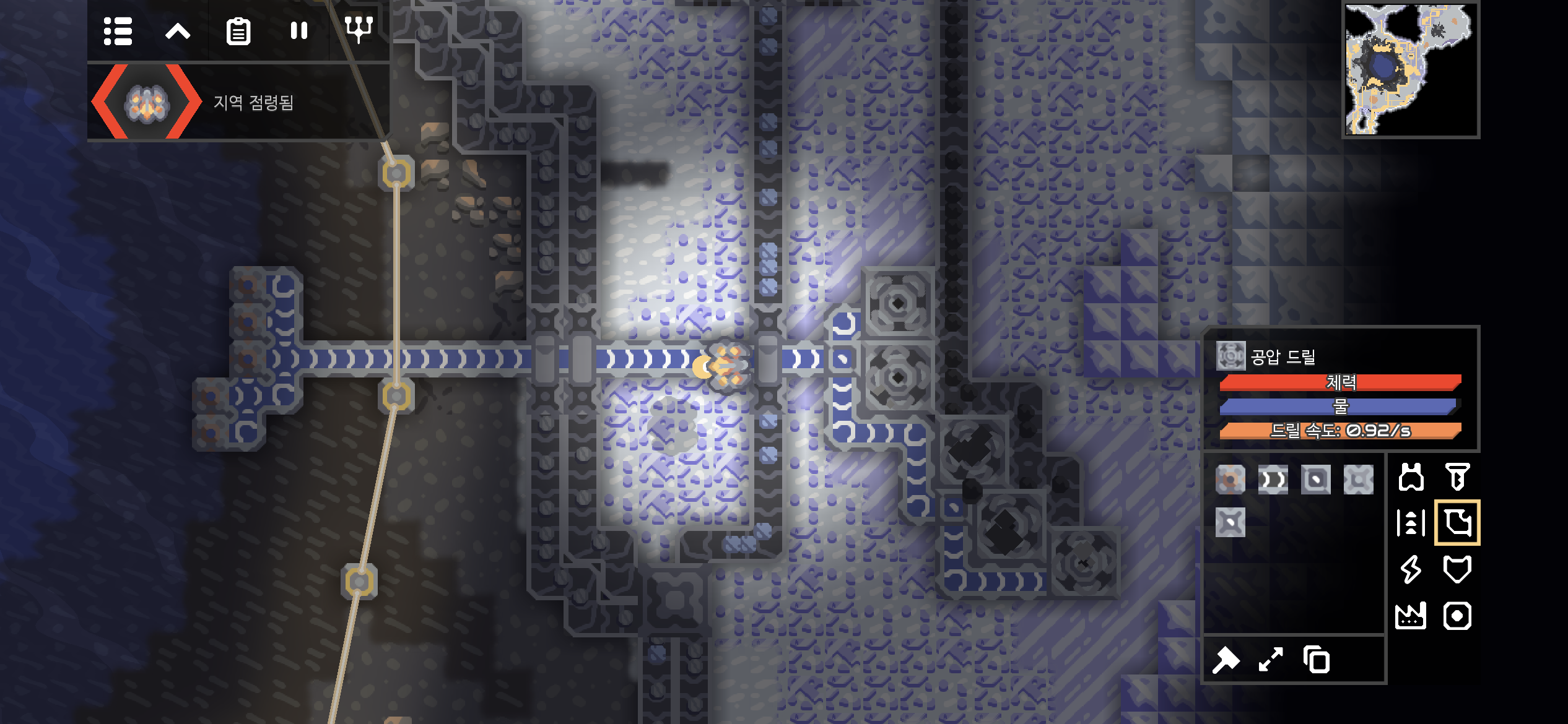 이전 얼어붙은 숲을 점령하고 공압 드릴이 해금되었습니다. 건설을 위해 연구를 진행합니다.