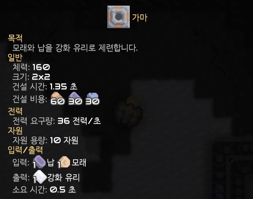 아차 지역 설명에서 강화 유리를 제작하고 물을 끌어올리랬었죠? 납과 모래로 강화 유리를 생산하는 가마를 만들어보기로 합니다.