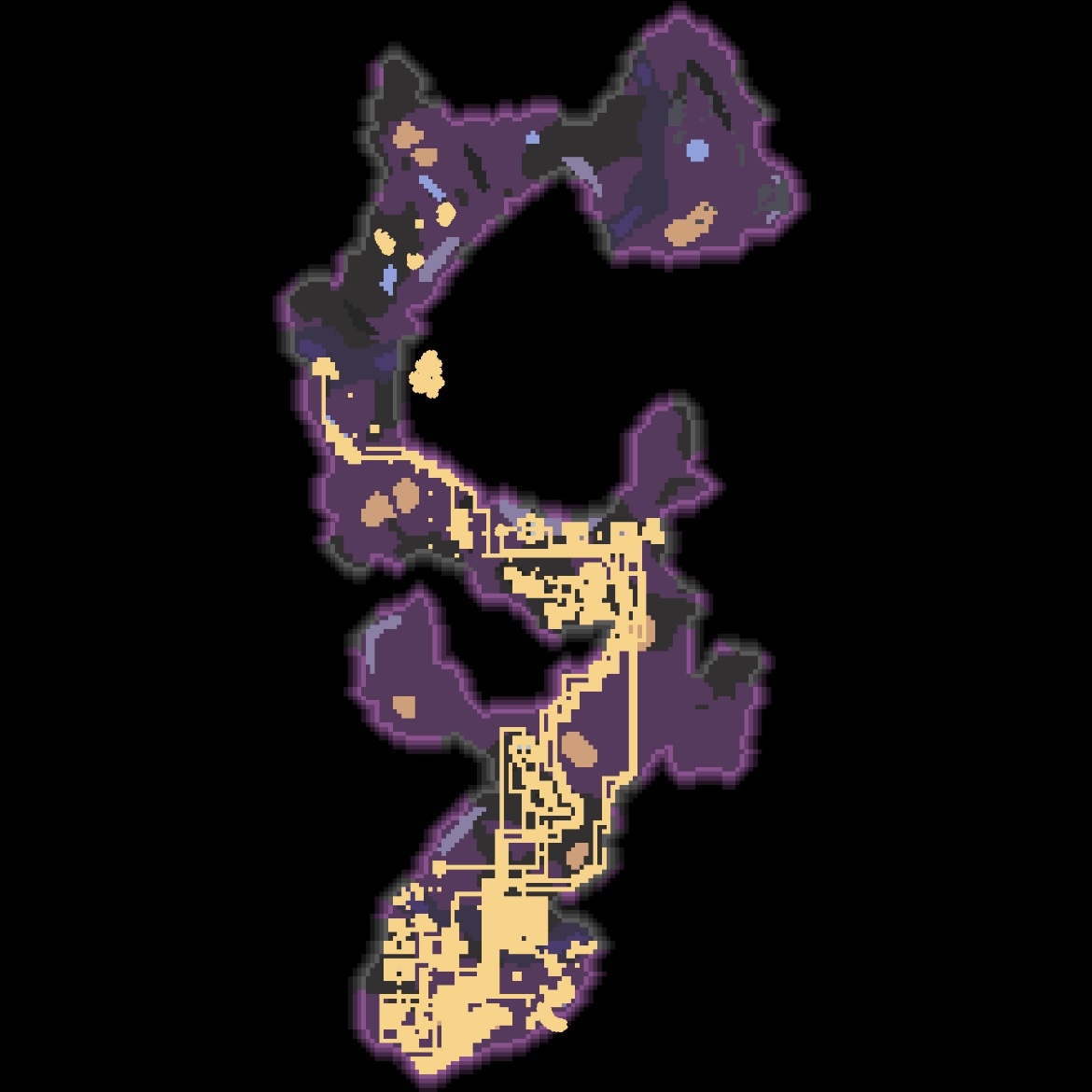 포자 지대 미니맵. 지역 모양이 희안하면서도 굉장히 단순한 구조입니다. 갈고리 모양 같아요. 적의 구조물은 미니맵에 빨간색으로 표시됩니다.