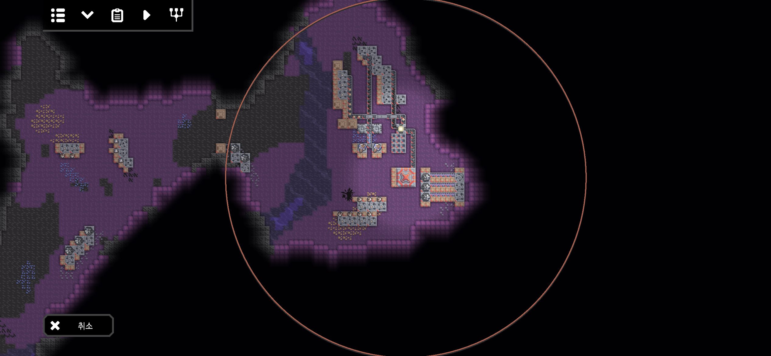 적의 위치인 빨간색 점은 모두 사라지고 여러 시설들로 가득 차게된 포자 지대의 미니맵. 뿌듯합니다.