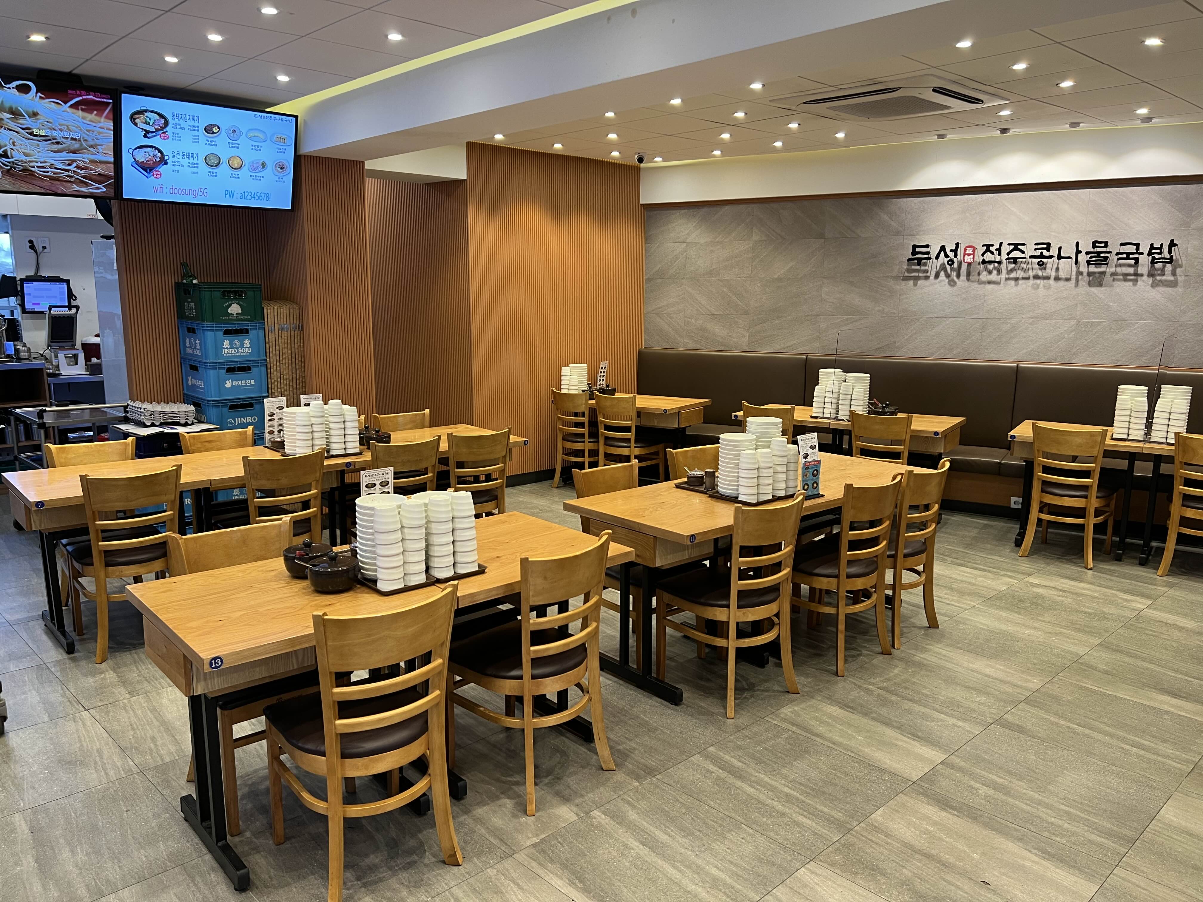 두성전주콩나물국밥집 길동직영점의 내부가 깔끔합니다. 점심시간엔 늘 웨이팅이 있어서 식사를 하기 힘들었는데 저녁엔 한산하네요.