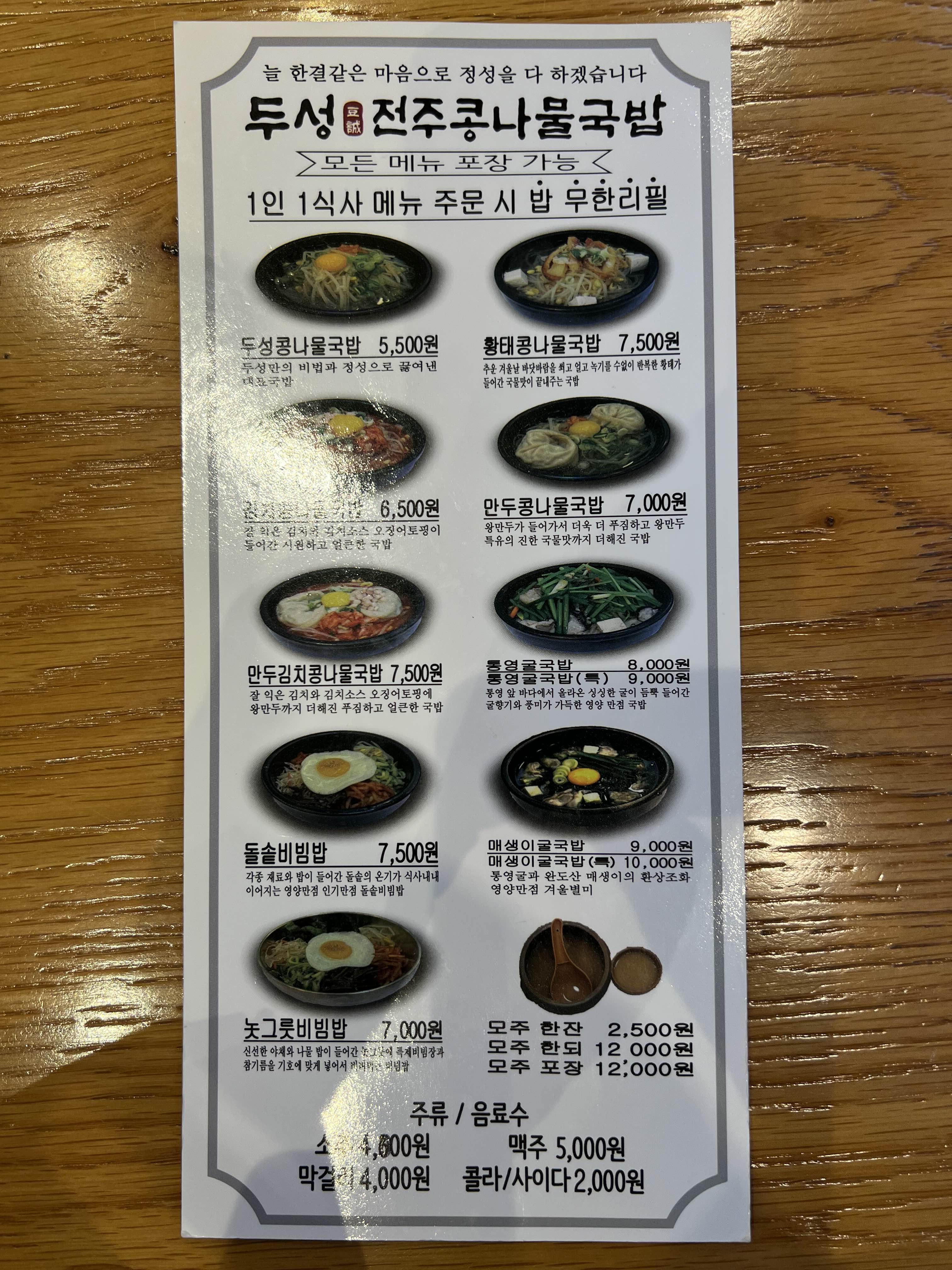 콩나물이 아주 신선한 두성전주콩나물국밥의 콩나물국밥! 한끼 식사로 뿐만 아니라 속이 시윈해지는 콩나물 국밥이 해장에도 아주 좋을 것 같네요. 가격도 아주 착합니다.
