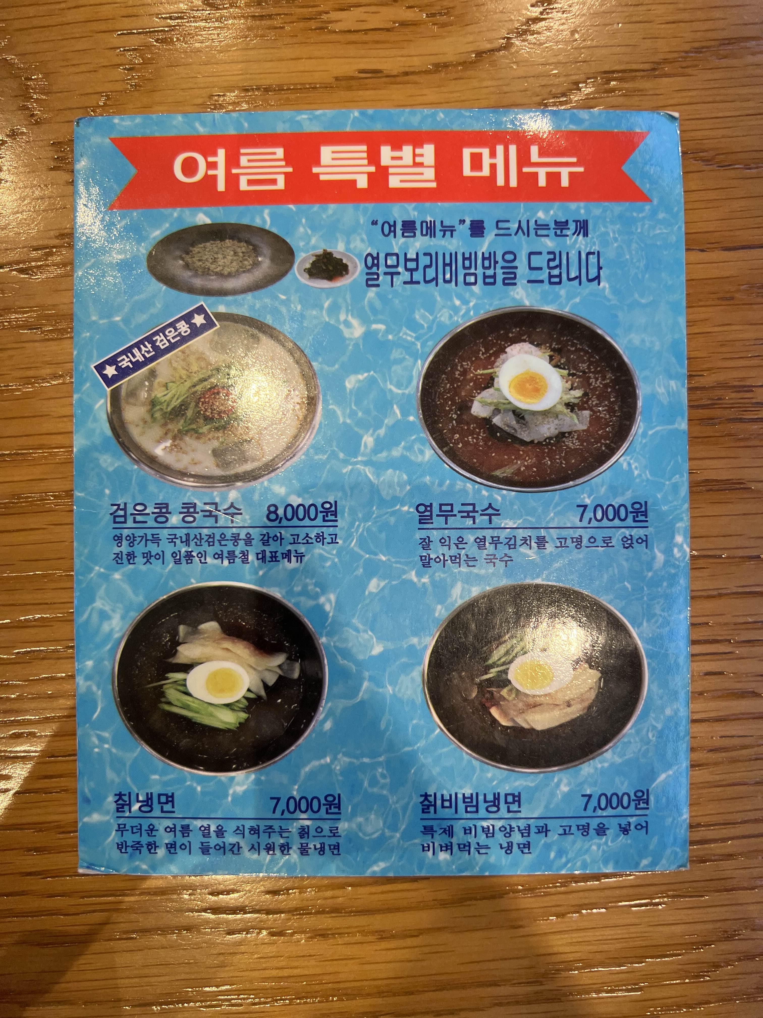 별도의 여름 특별 메뉴판도 있네요. 여름 메뉴 주문시 열무보리비빔밥이 나온다고 합니다. 콩국수를 좋아하는 저는 잠시 고민을 합니다. 높은 외식 물가를 염려해 콩나물국밥을 주문했습니다.