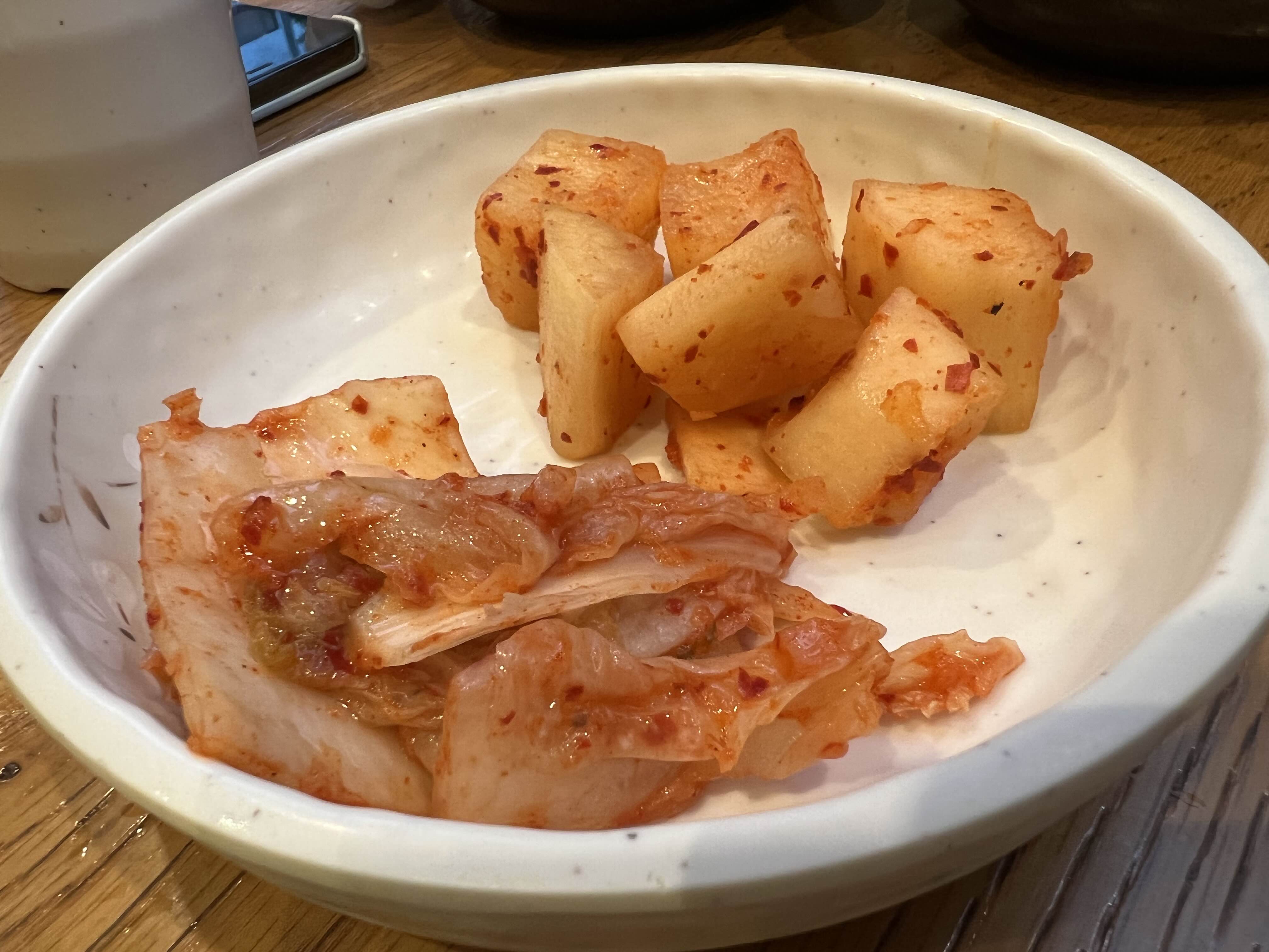 주문을 하자 달걀과 간단한 밑반찬이 나옵니다.