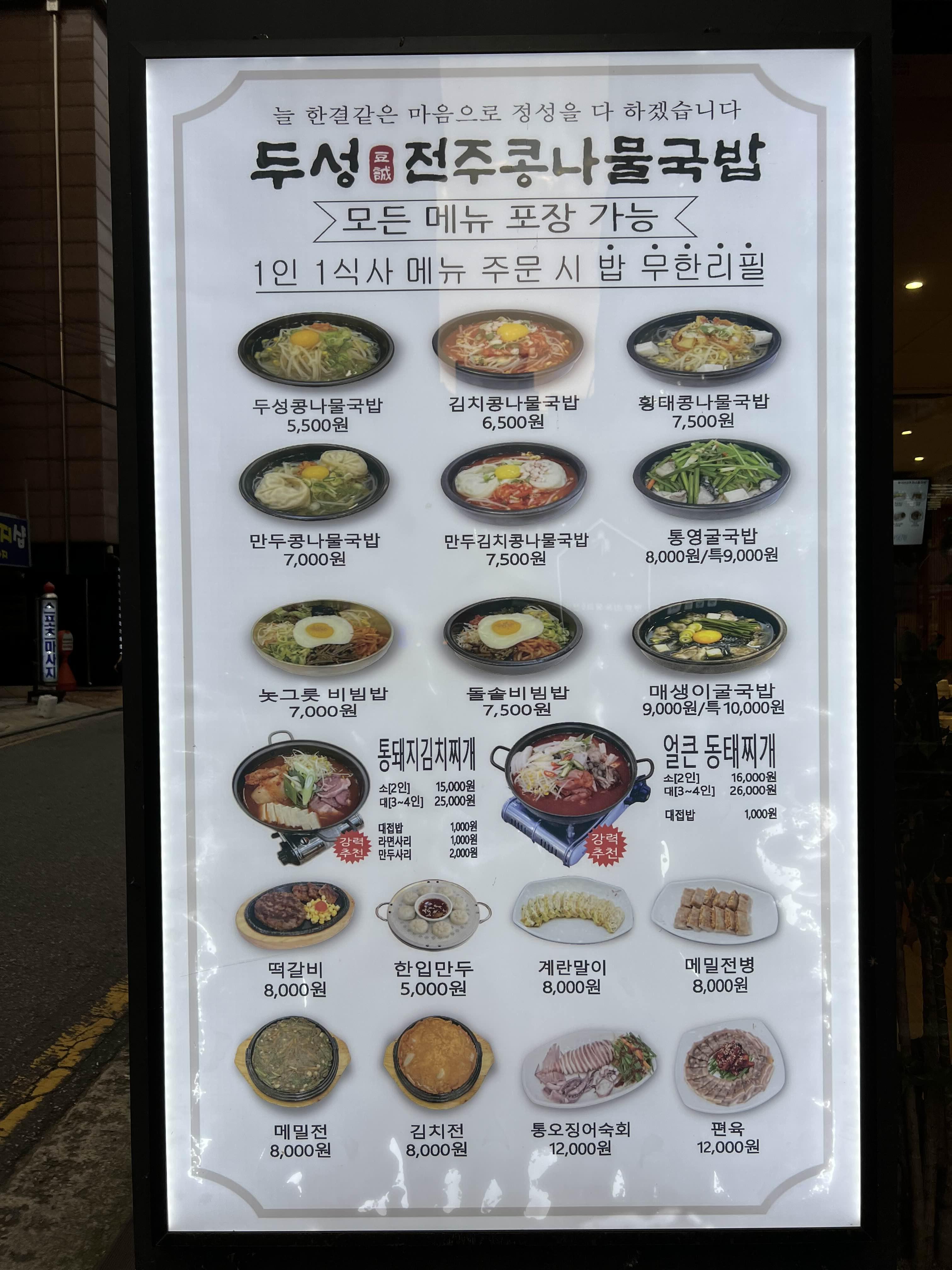 길동역 근처 24시 식당 ‘두성전주콩나물국밥’이었습니다.