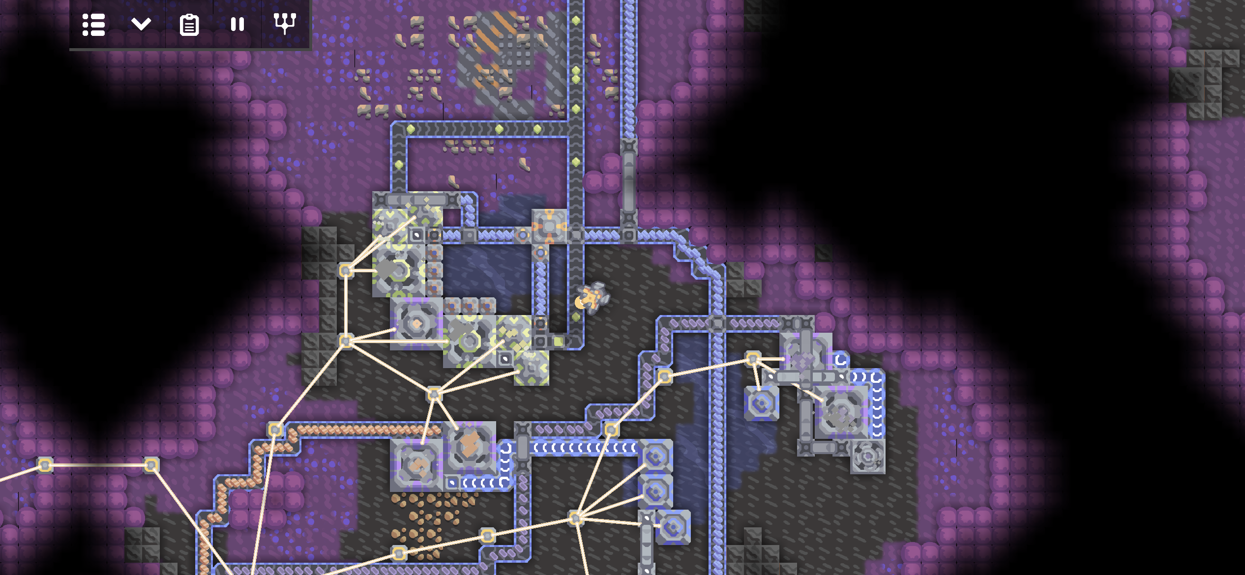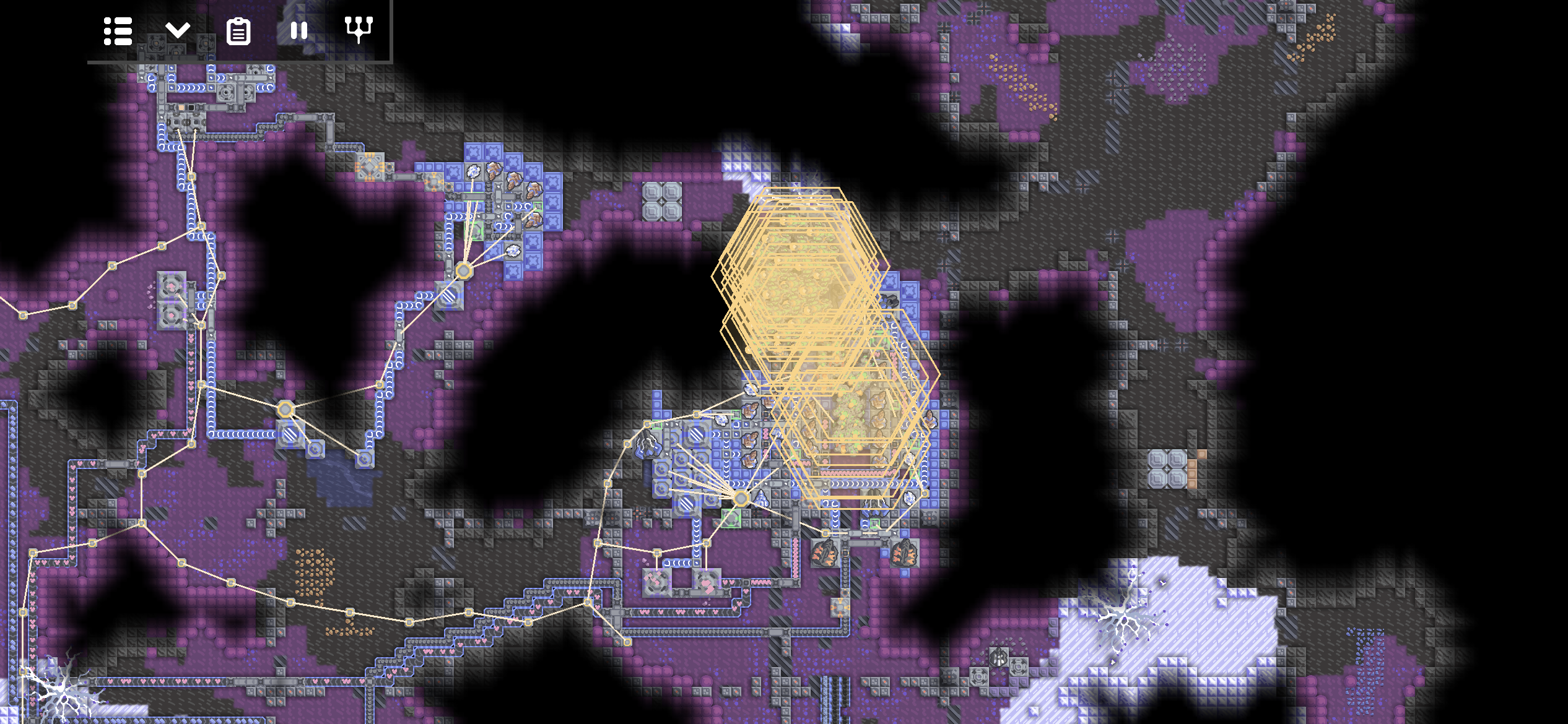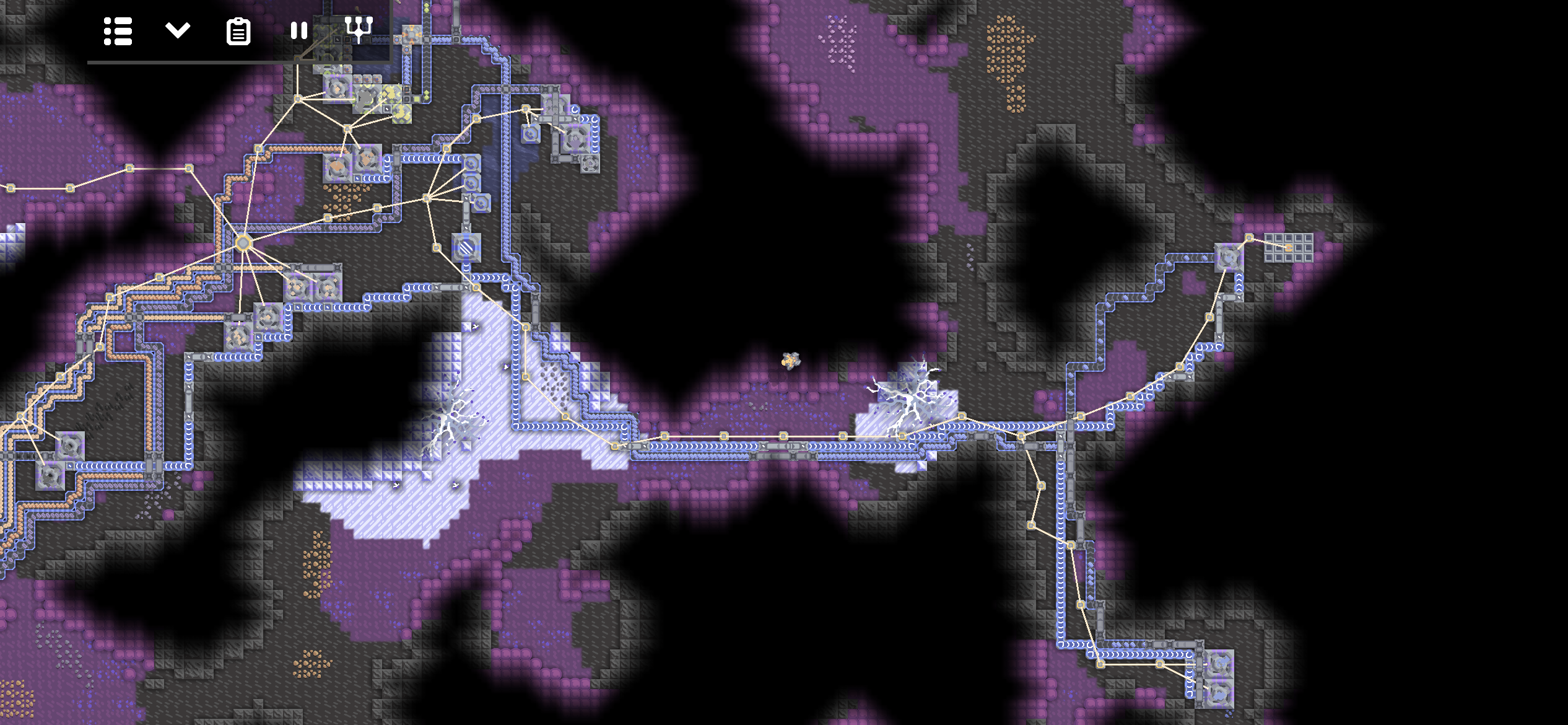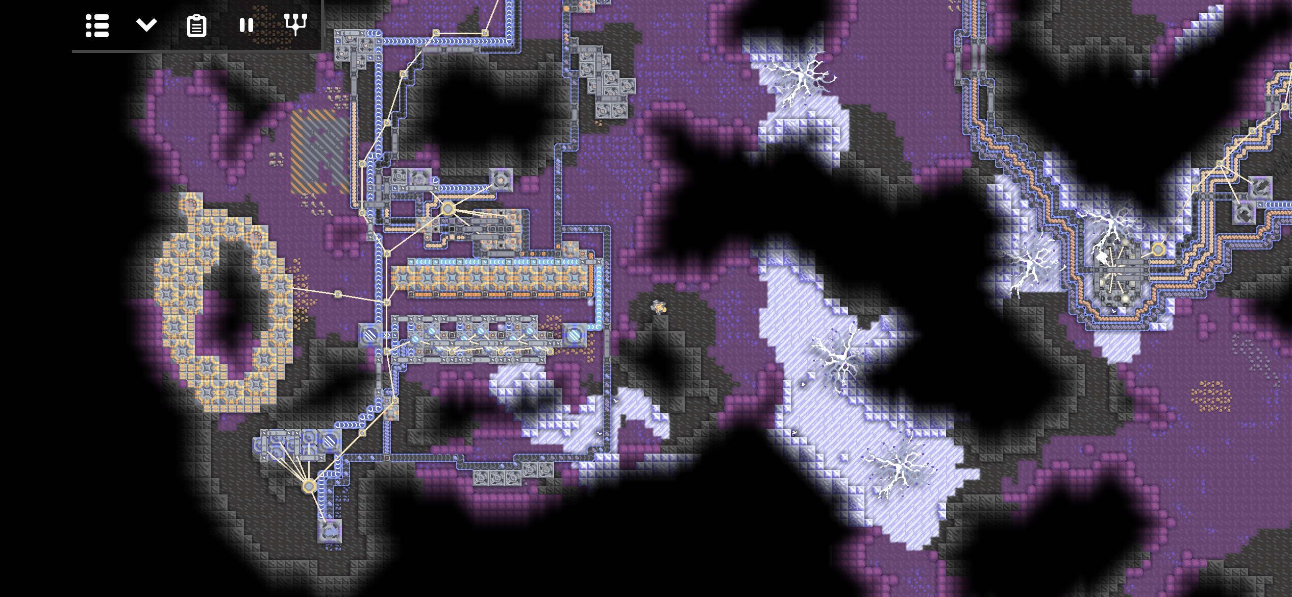 자원을 모아 세번째 시도중인 과성장 지대. 발전 시설과의 연결이 끊어져 화력 발전기를 급한대로 만들었습니다. 폴리가 나타나면 다 해결해줄거에요. 폴리야 얼른 생산되렴~