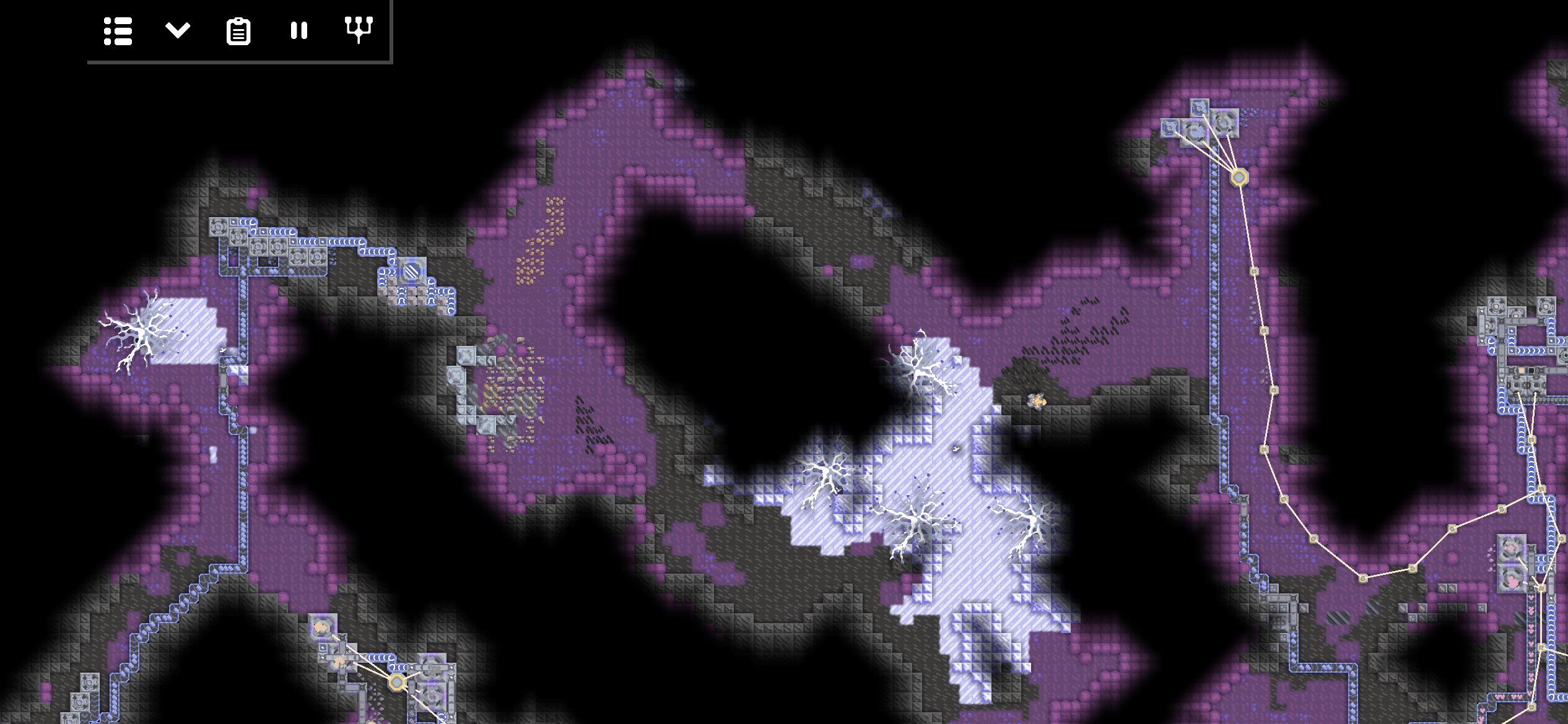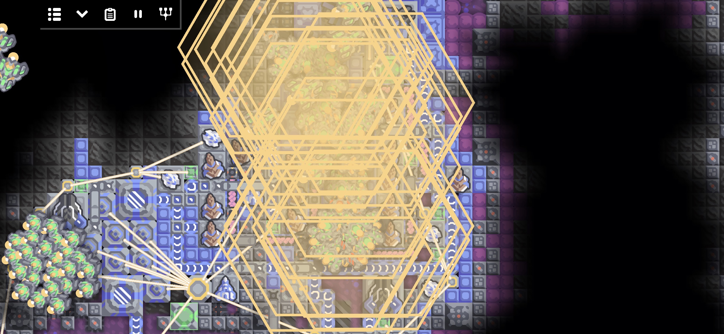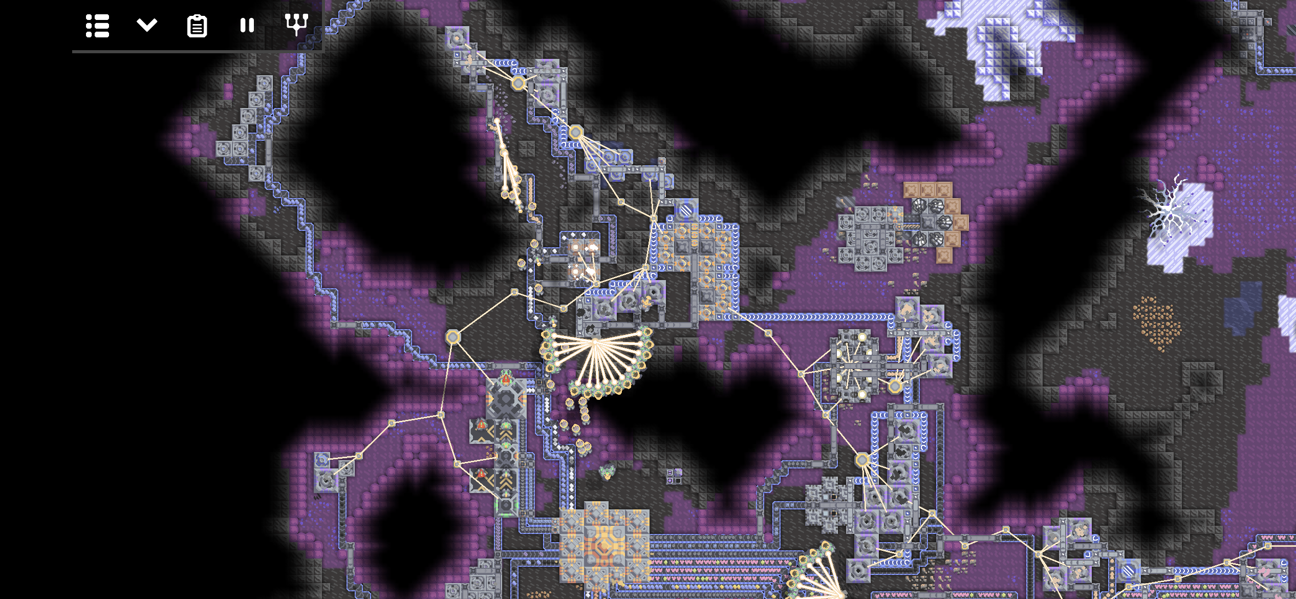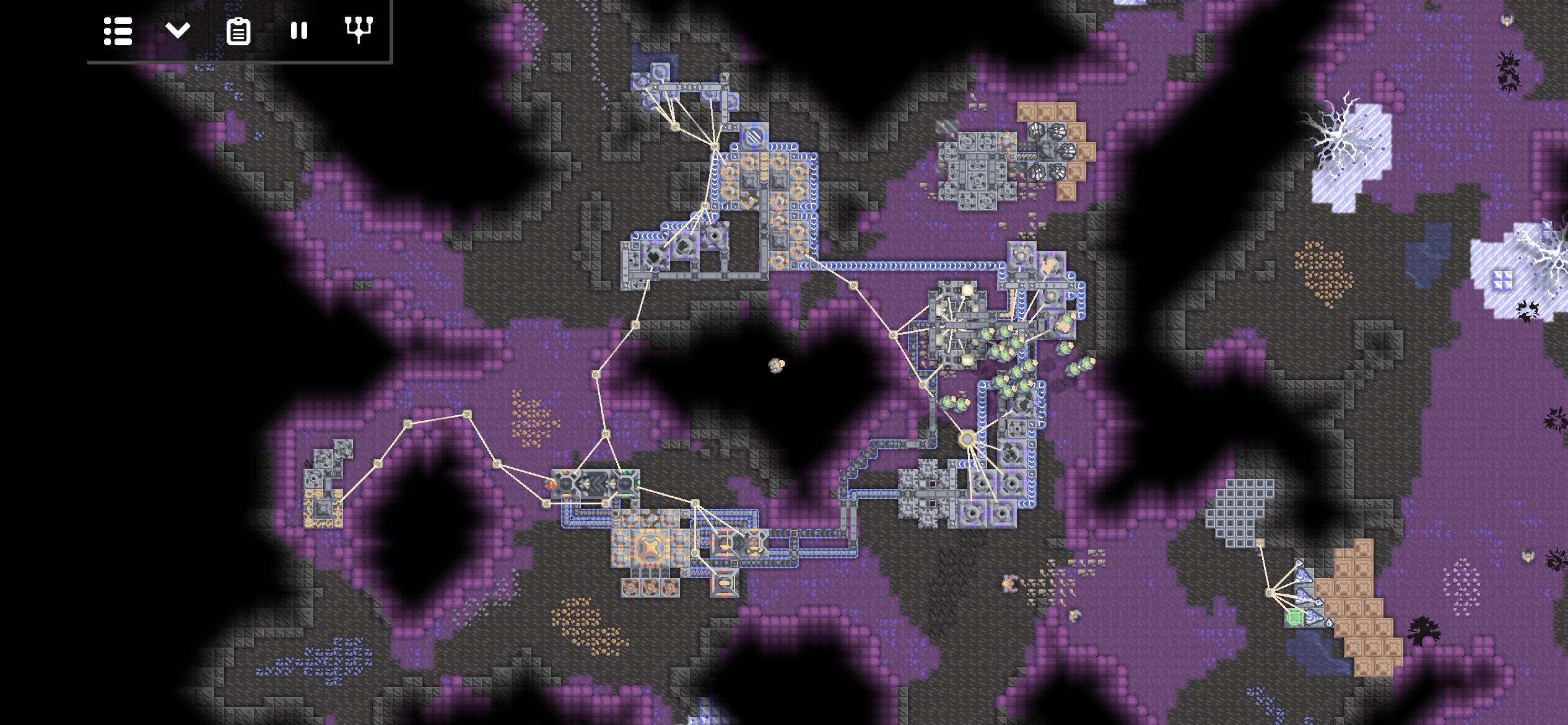 자원을 모아 세번째 시도중인 과성장 지대. 발전 시설과의 연결이 끊어져 화력 발전기를 급한대로 만들었습니다. 폴리가 나타나면 다 해결해줄거에요. 폴리야 얼른 생산되렴~