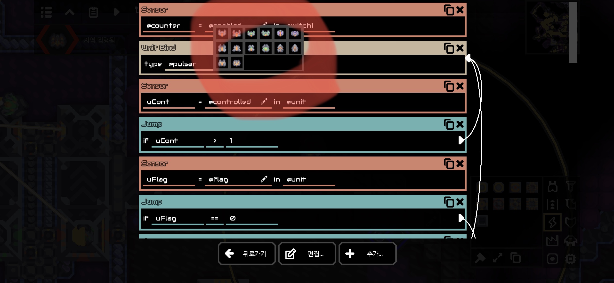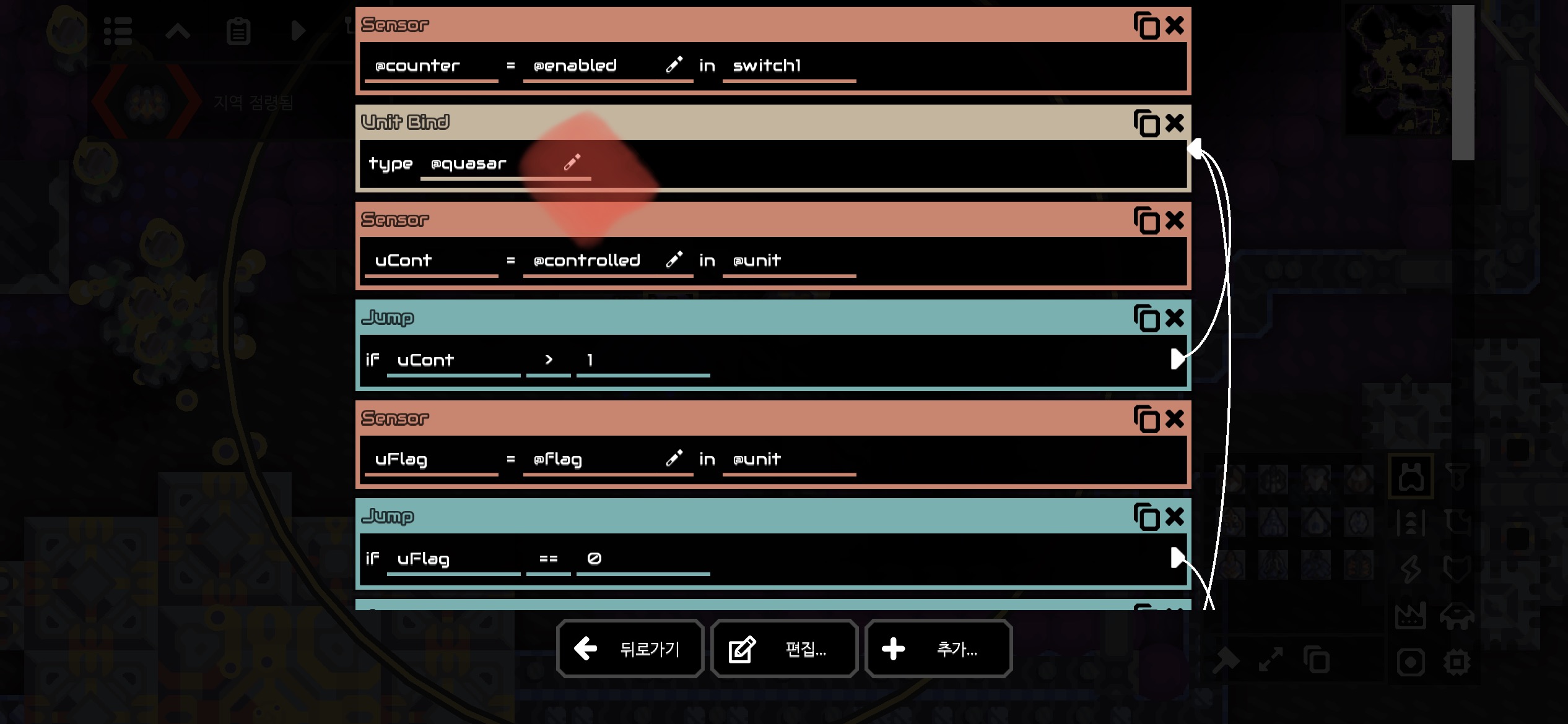 채굴 능력은 있지만, 자동으로 자원을 채굴하지 않는 유닛들을 위한 명령어 설계도! 메모 블록에 간단한 설명이 있네요. 신경쓰지 않아도 될 내용인듯 합니다. 먼저 필터로 채굴을 명령할 자원의 종류를 선택하고,