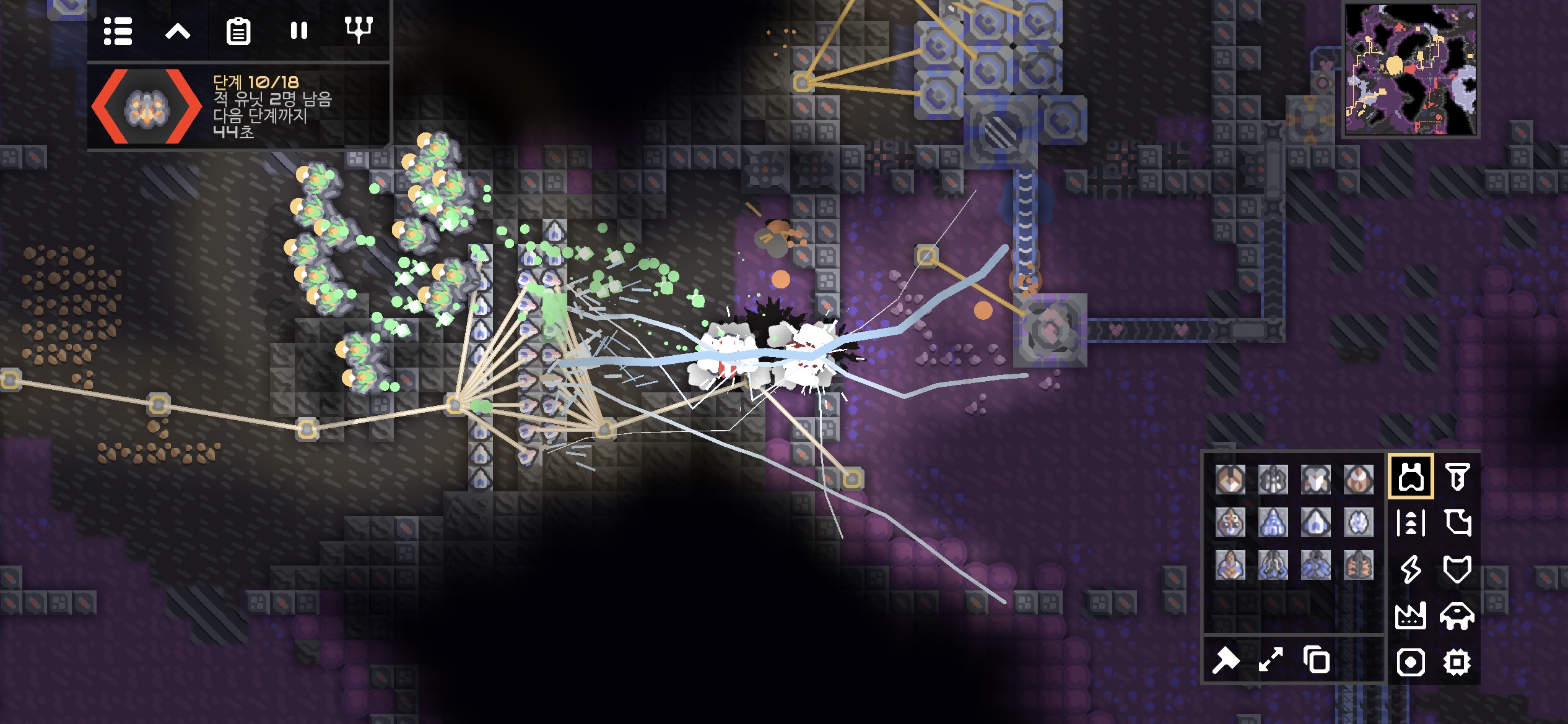 포자 지대를 점령한 후 연속해서 인접한 적 기지로 인해 플레이어의 피로도가 점점 쌓이고 있습니다..ㅠ ㅠ 하지만 지속적인 적의 침공으로부터 점령지를 지켜내기 위해,