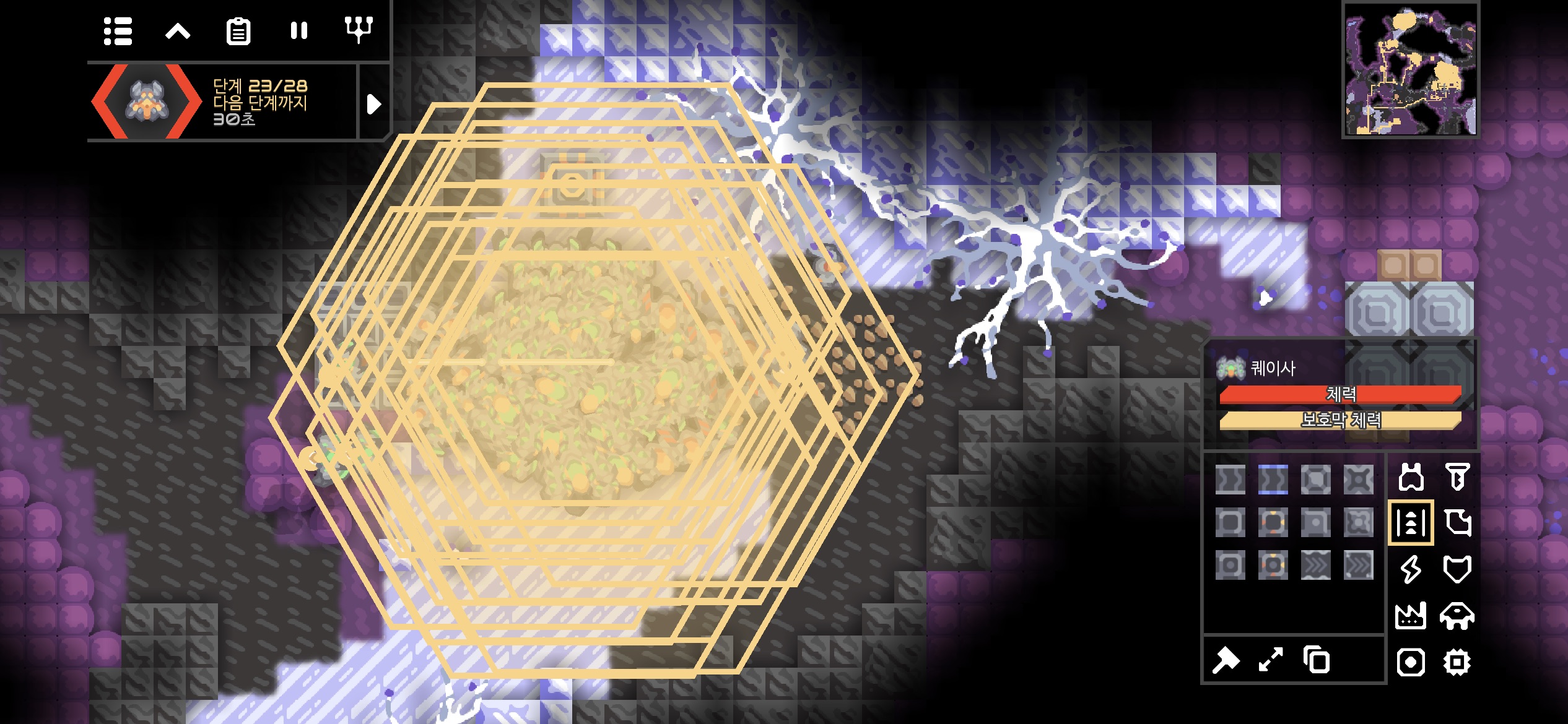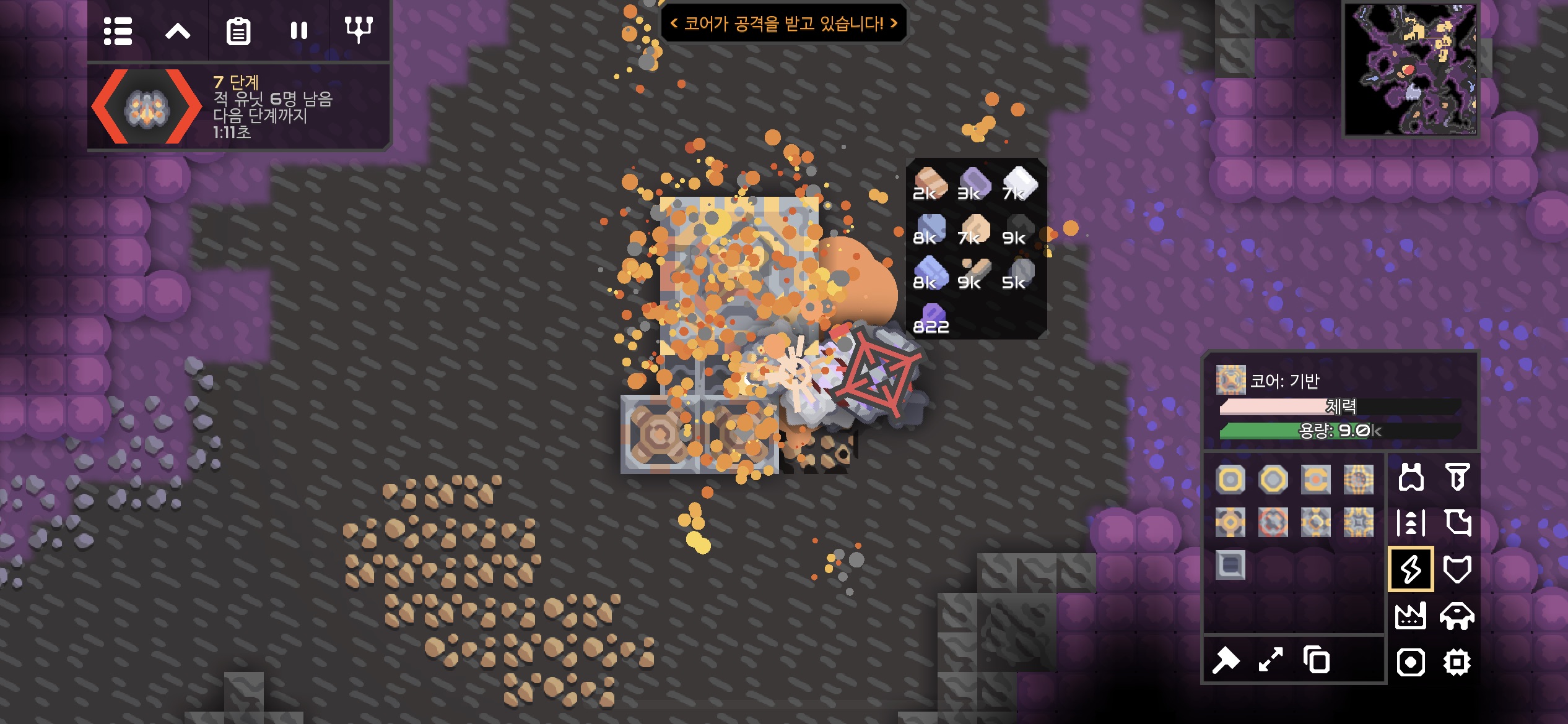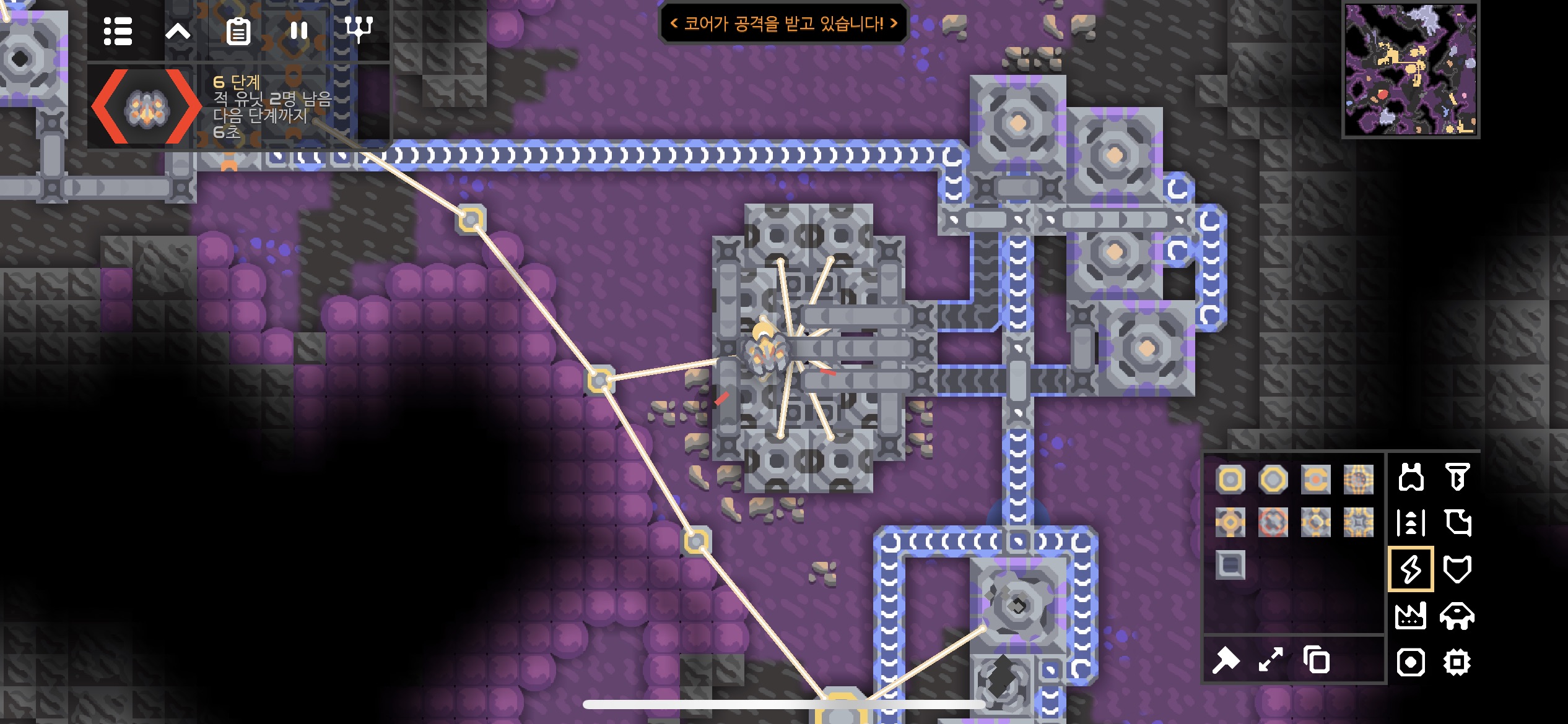 지상 유닛을 생산하던 도중 갑작스레 나타난 적과 공격받고 있는 코어.. 이게 도대체 무슨일인가요?