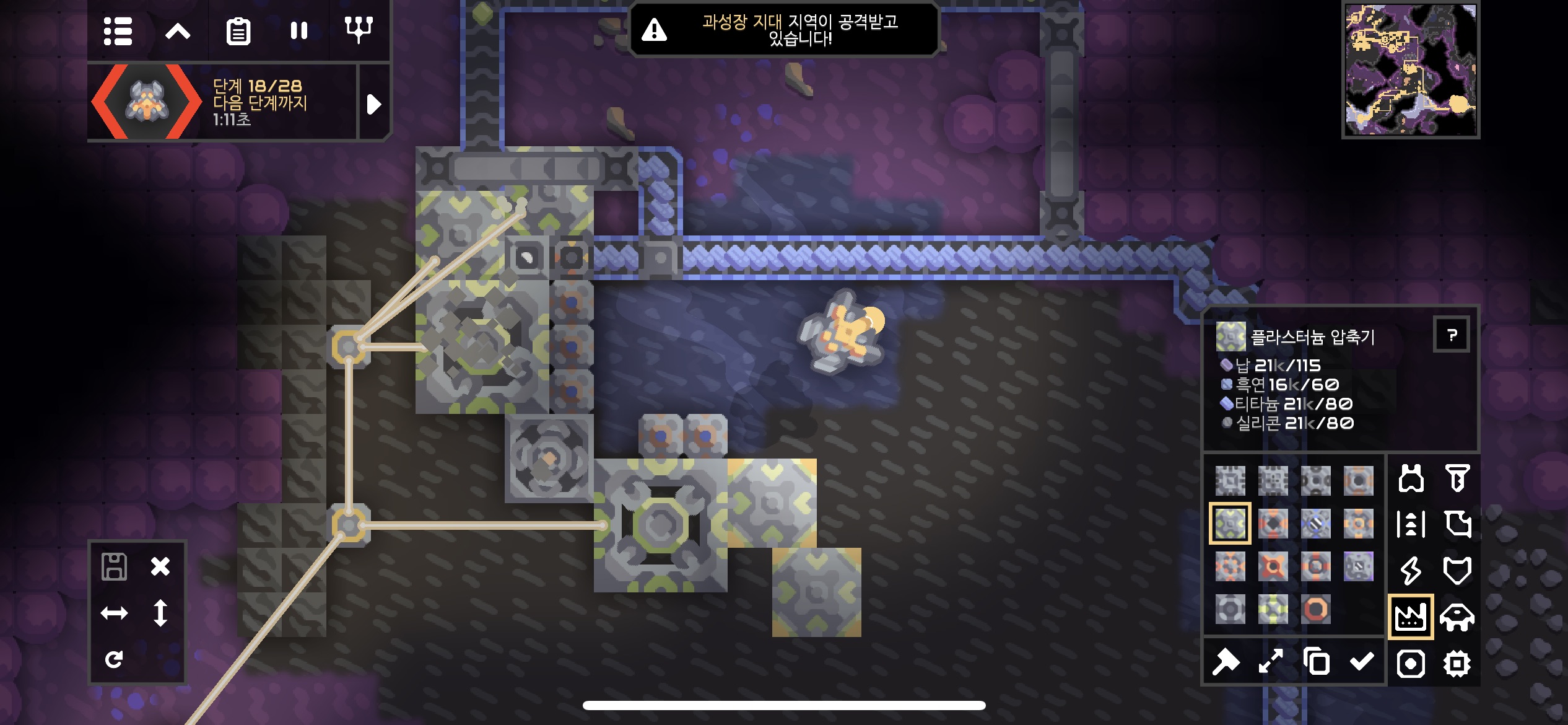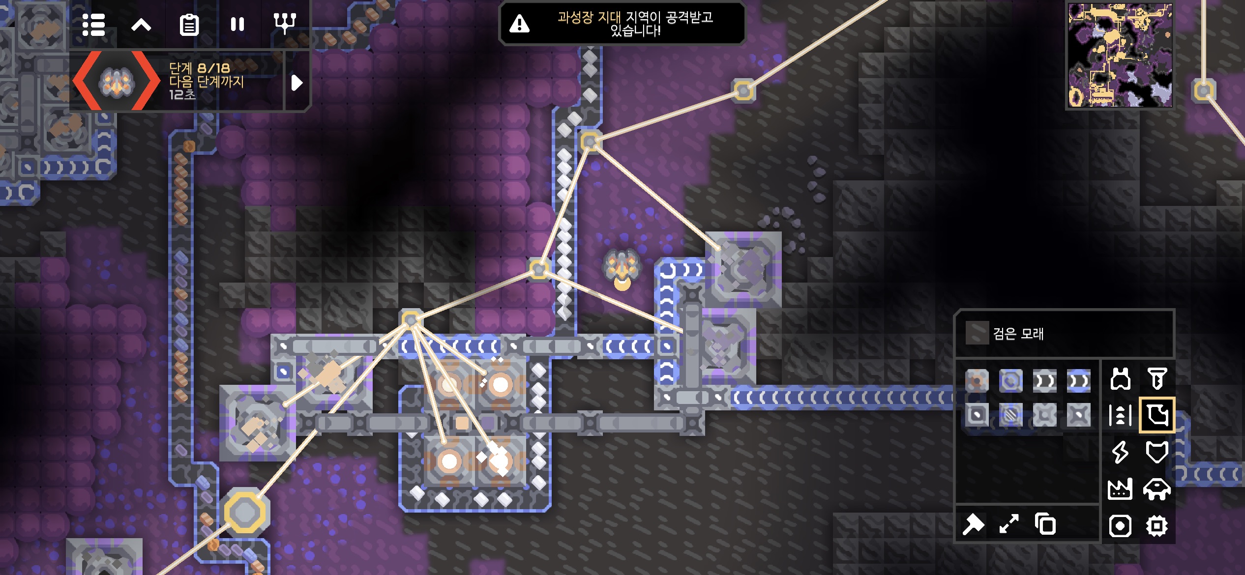실리콘 공장을 만들던 도중 코어가 공격받고 있단 메세지..!
