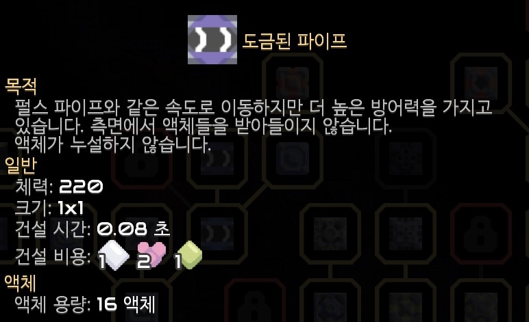 장갑 컨베이어와 동급의 도금된 파이프. 액체가 누설되지 않는다는 특징이 있네요. 액체의 이동속도는 펄스 파이프와 동일하다고 합니다.