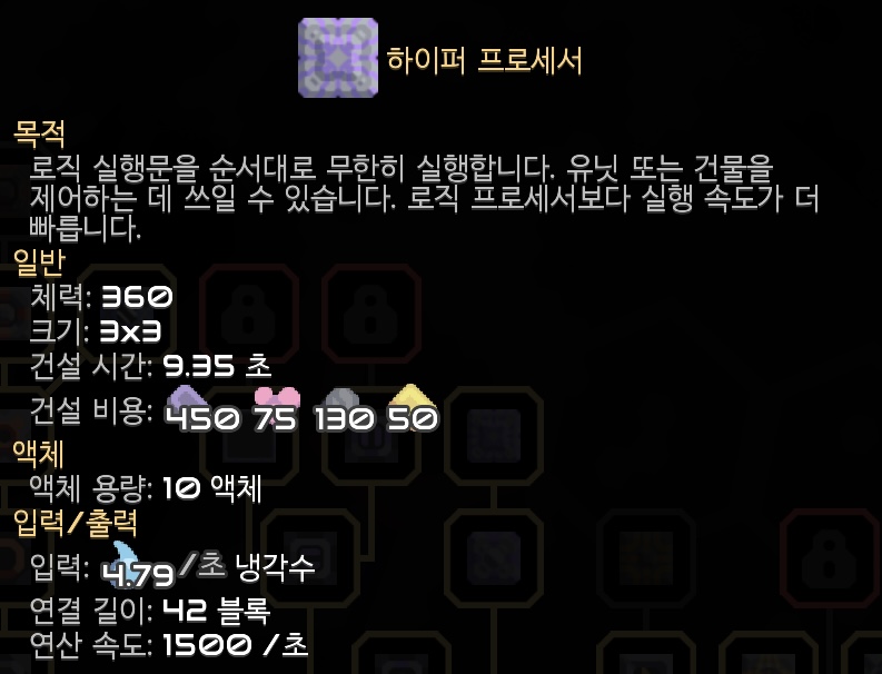설금으로 연구한 하이퍼 프로세서입니다. 설계도에 포함된 건물이 아니라면 직접 만들일은 없을것 같네요.