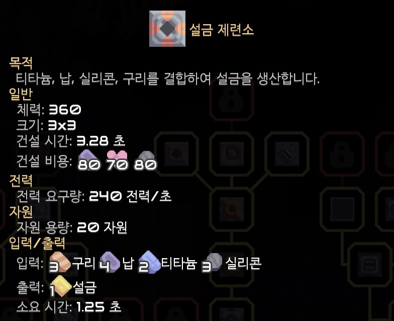 토륨으로 연구한 설금 제련소. 구리 납 티타늄 실리콘으로 설금이라는 새로운 자원을 생산합니다. 설금을 만들면 새로운 콘텐츠가 또 해금되겠죠? 기대가 됩니다.