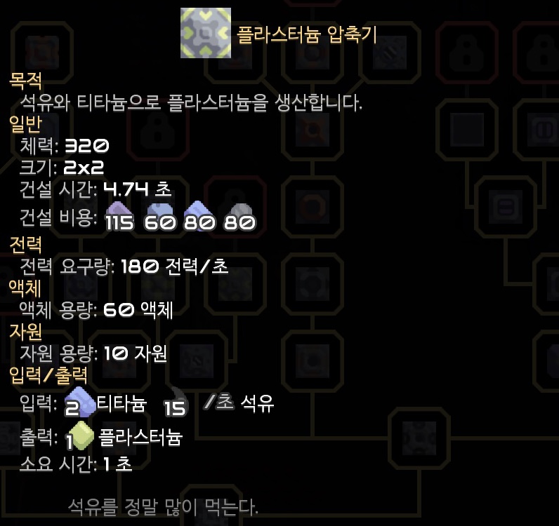 플라스터늄 압축기. 석유 추출기와 플라스터늄 압축기는 곧바로 만들어보기로 합니다.
