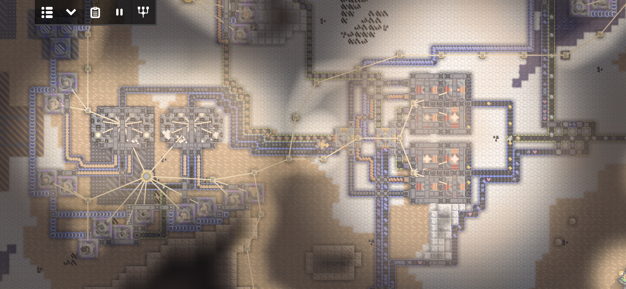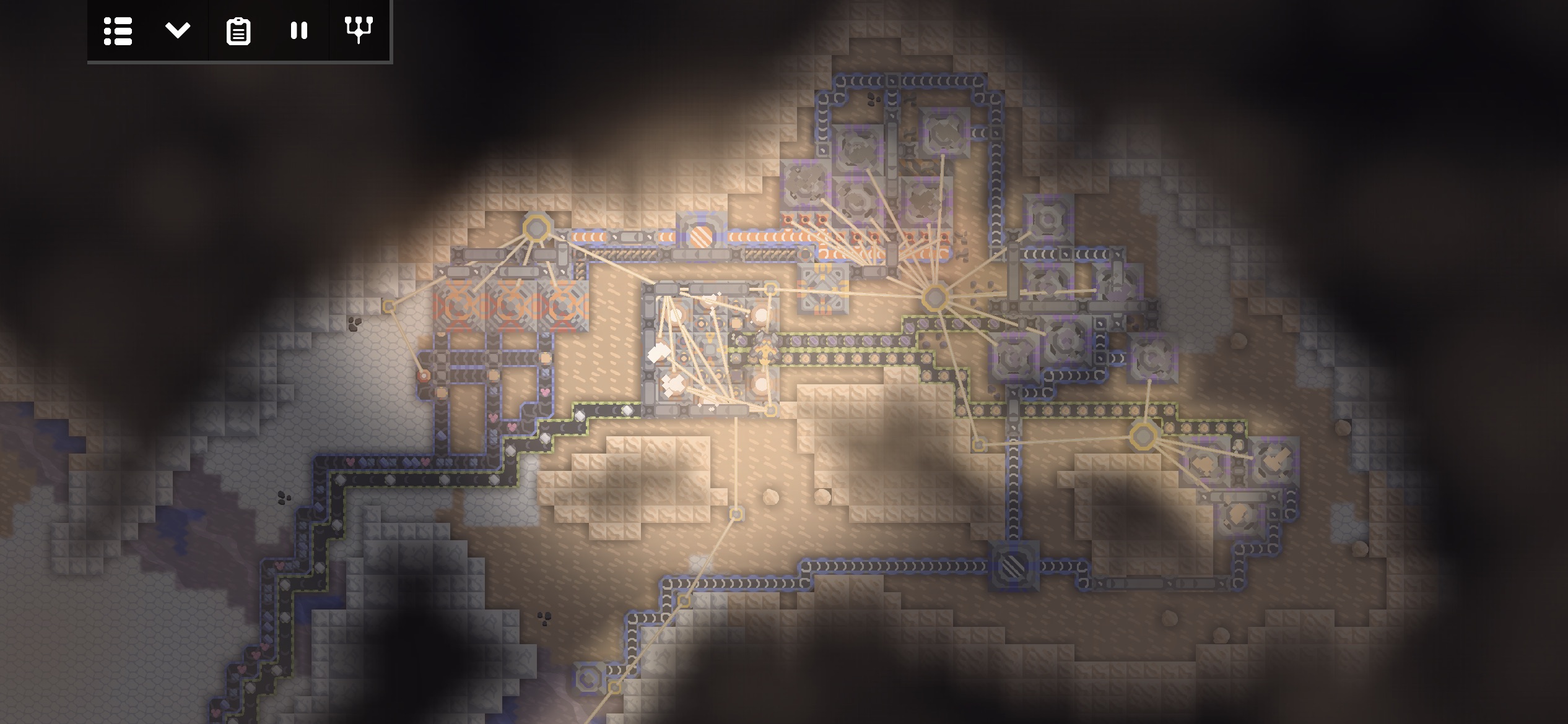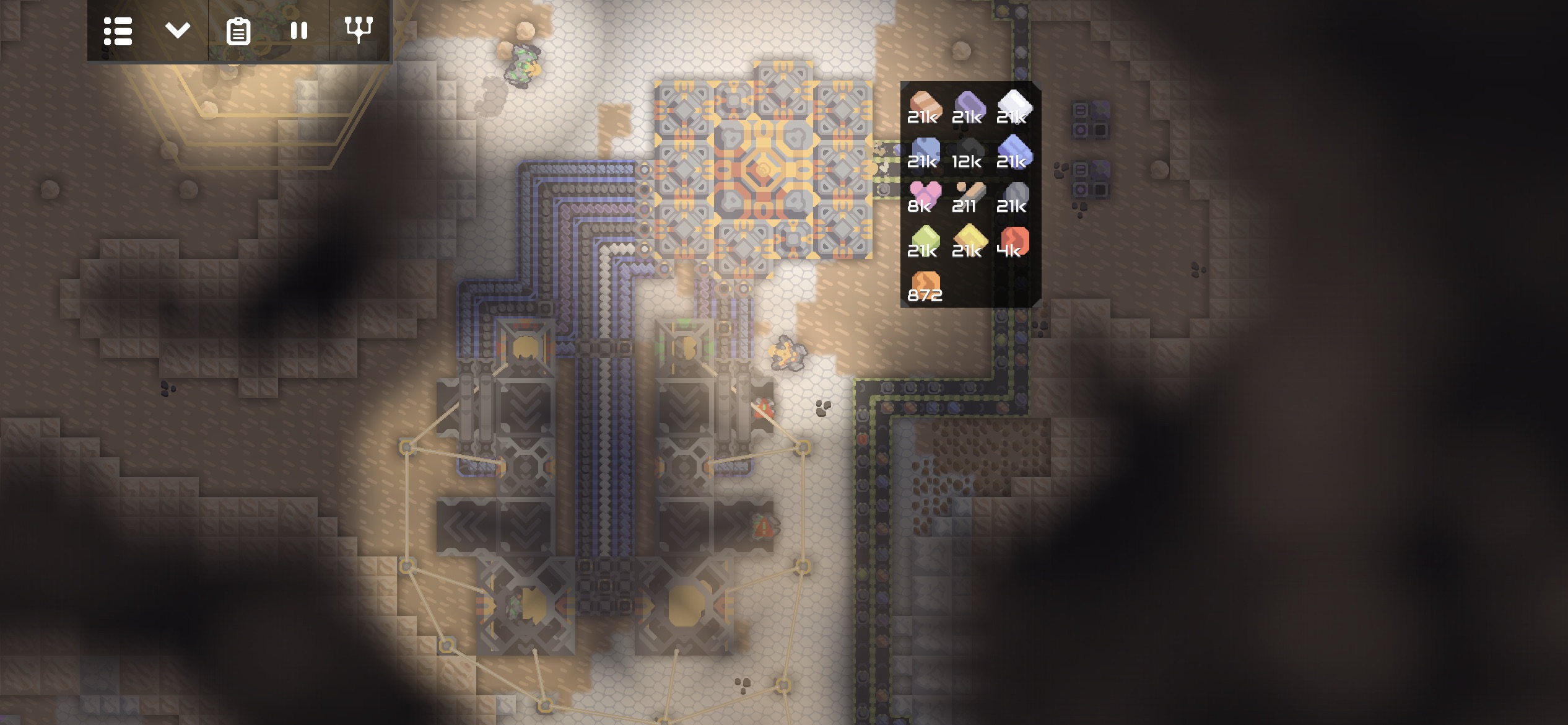 코어의 석탄으로 발전하는 화력 발전기의 전력을 임시로 저장해두기 위해 대형 배터리 몇개를 코어 근처에 건설했습니다.