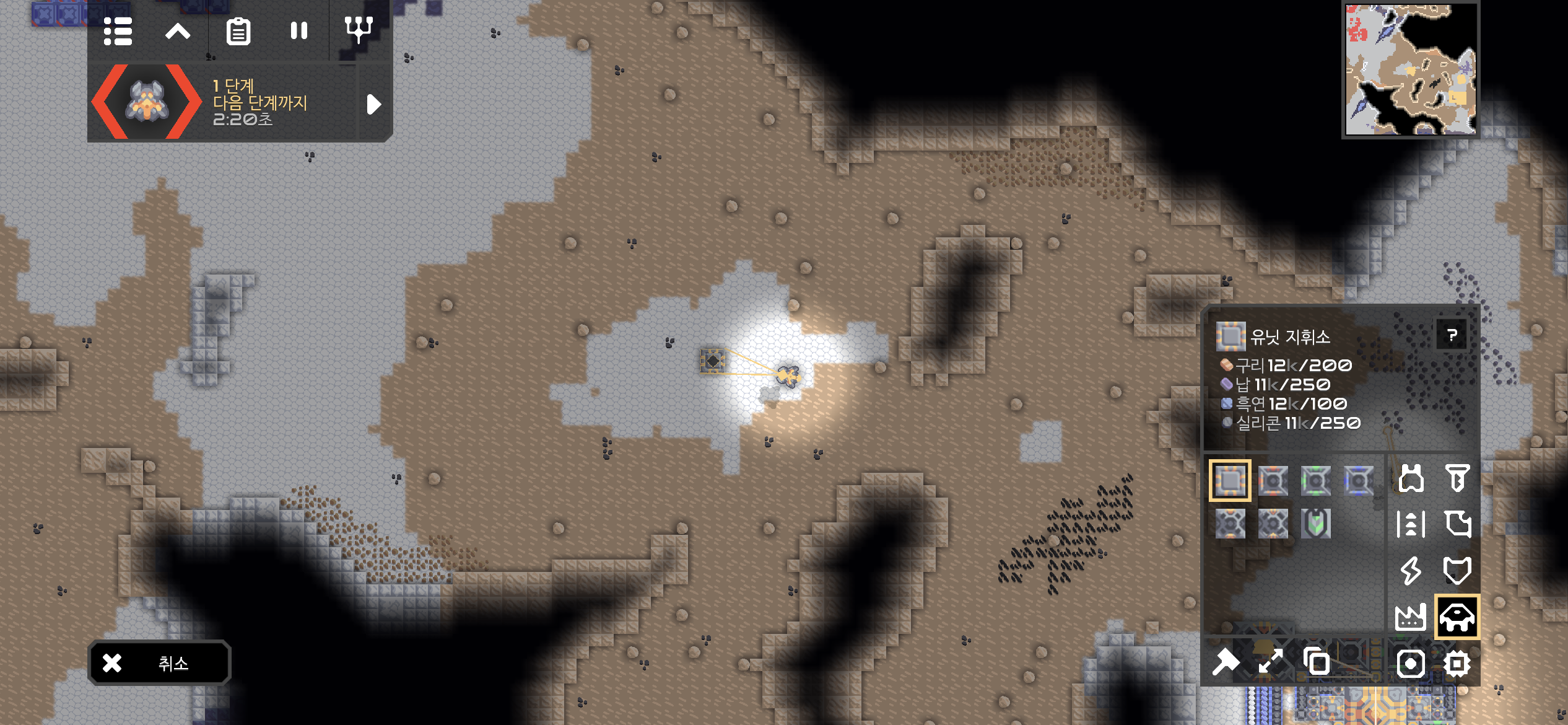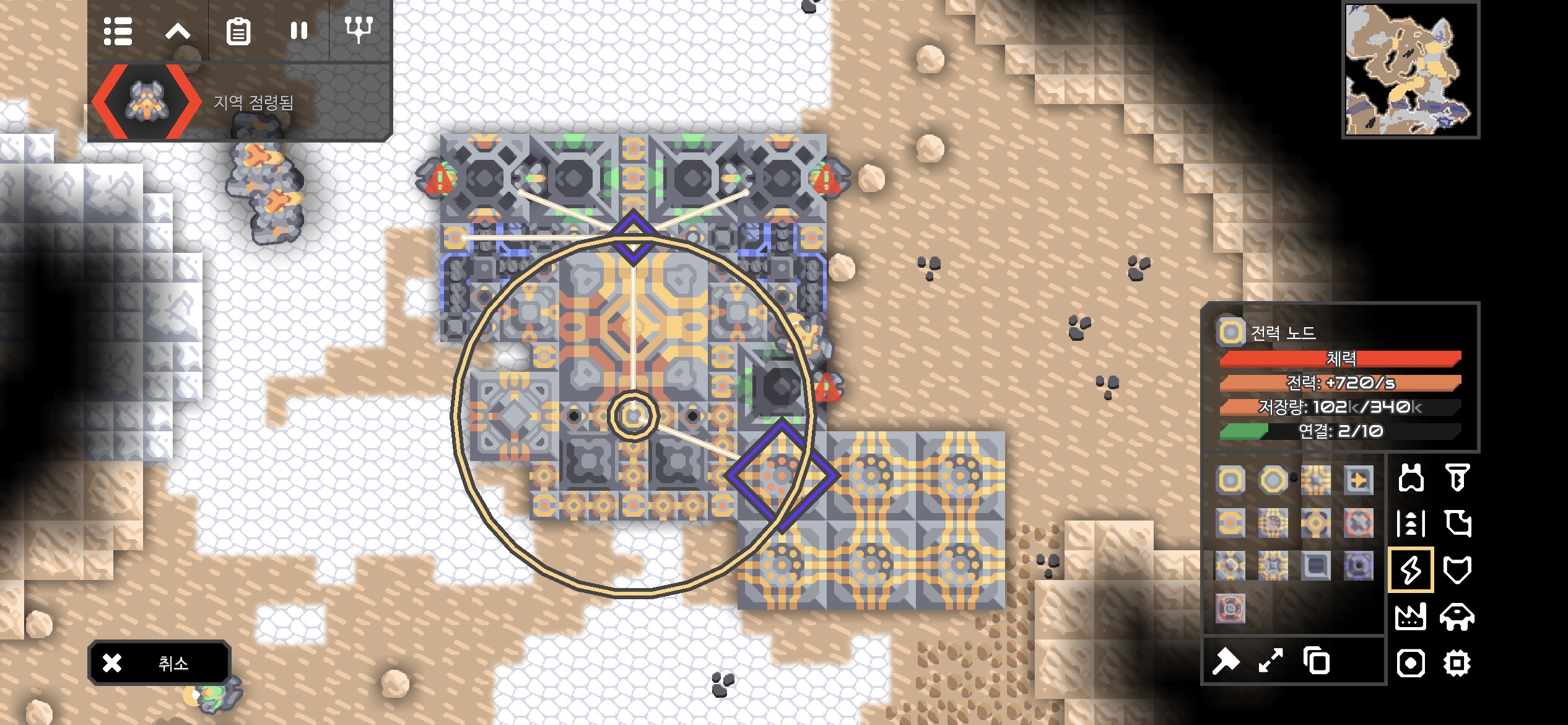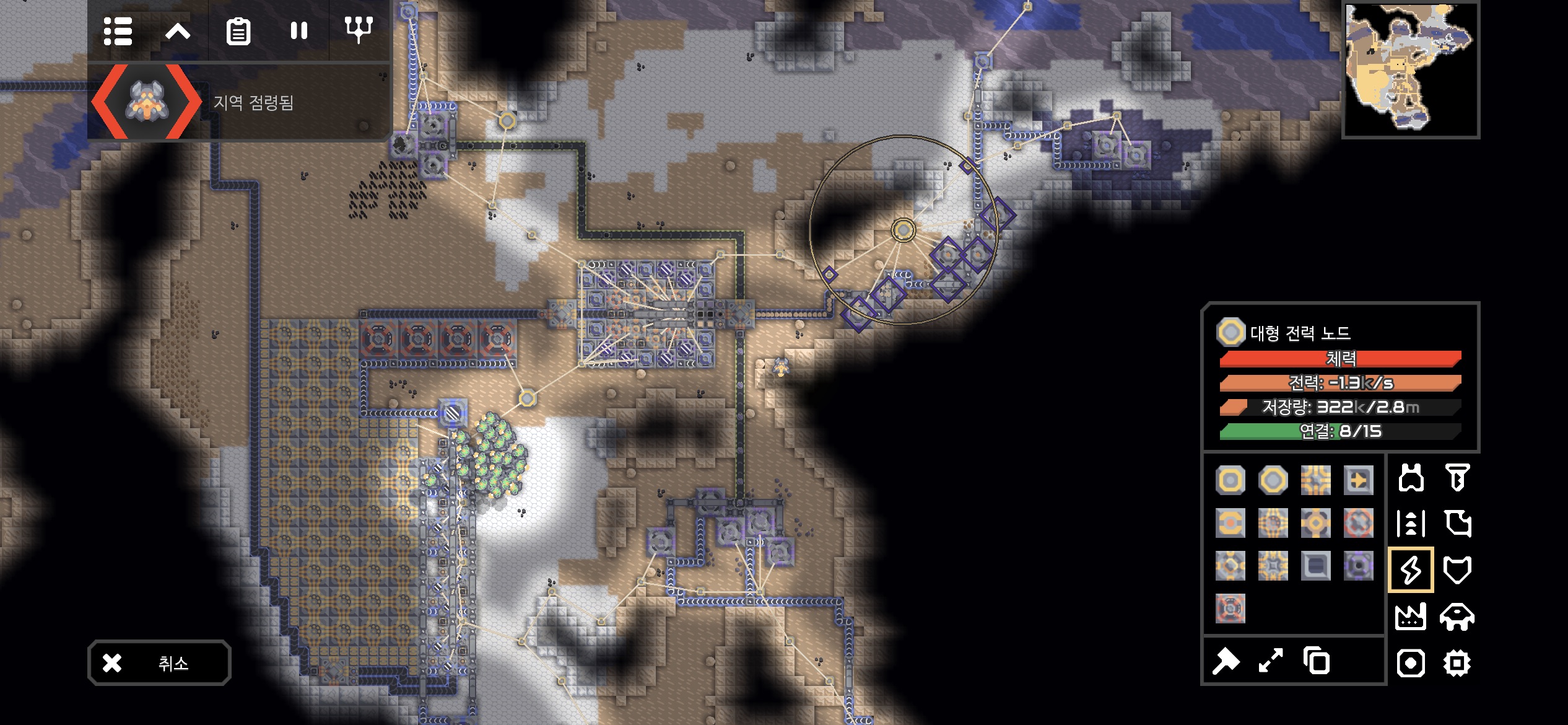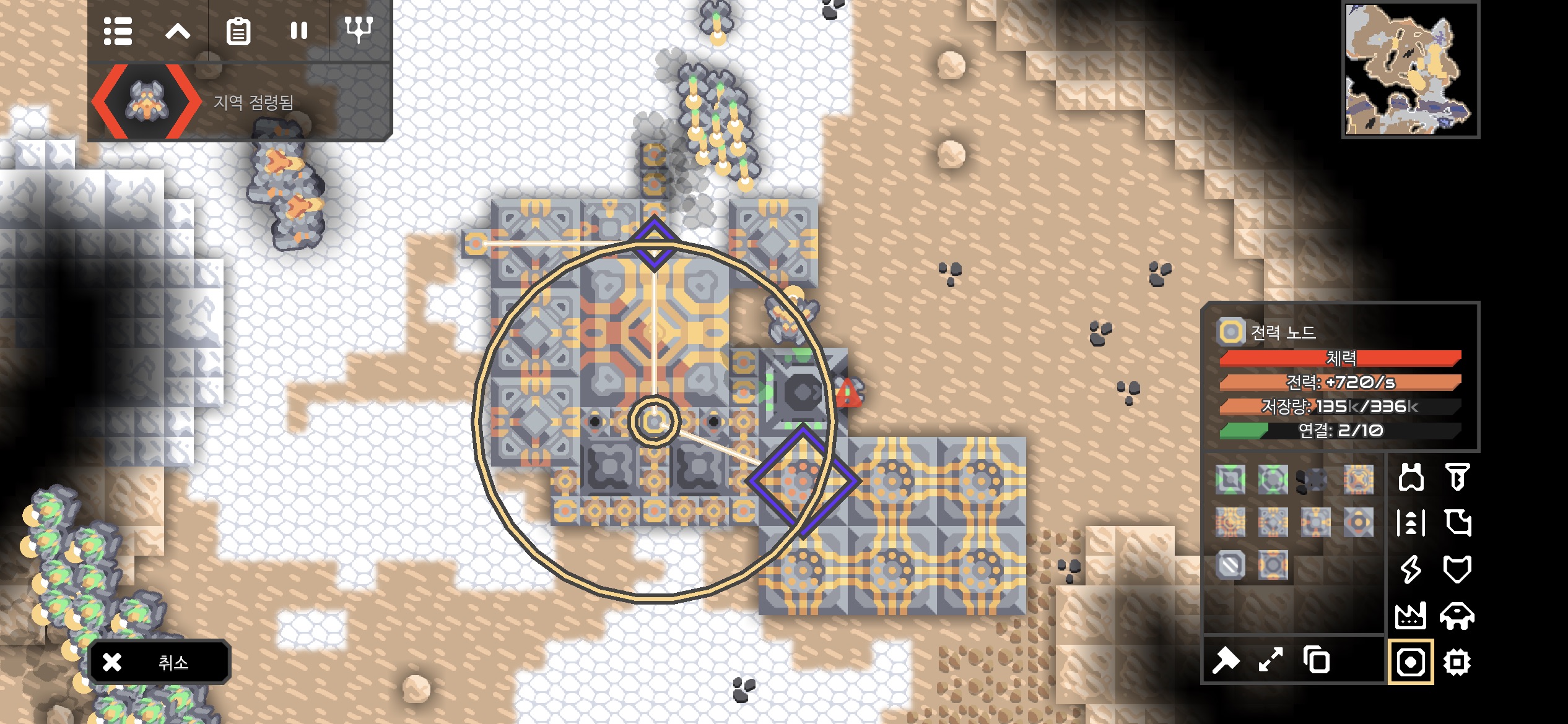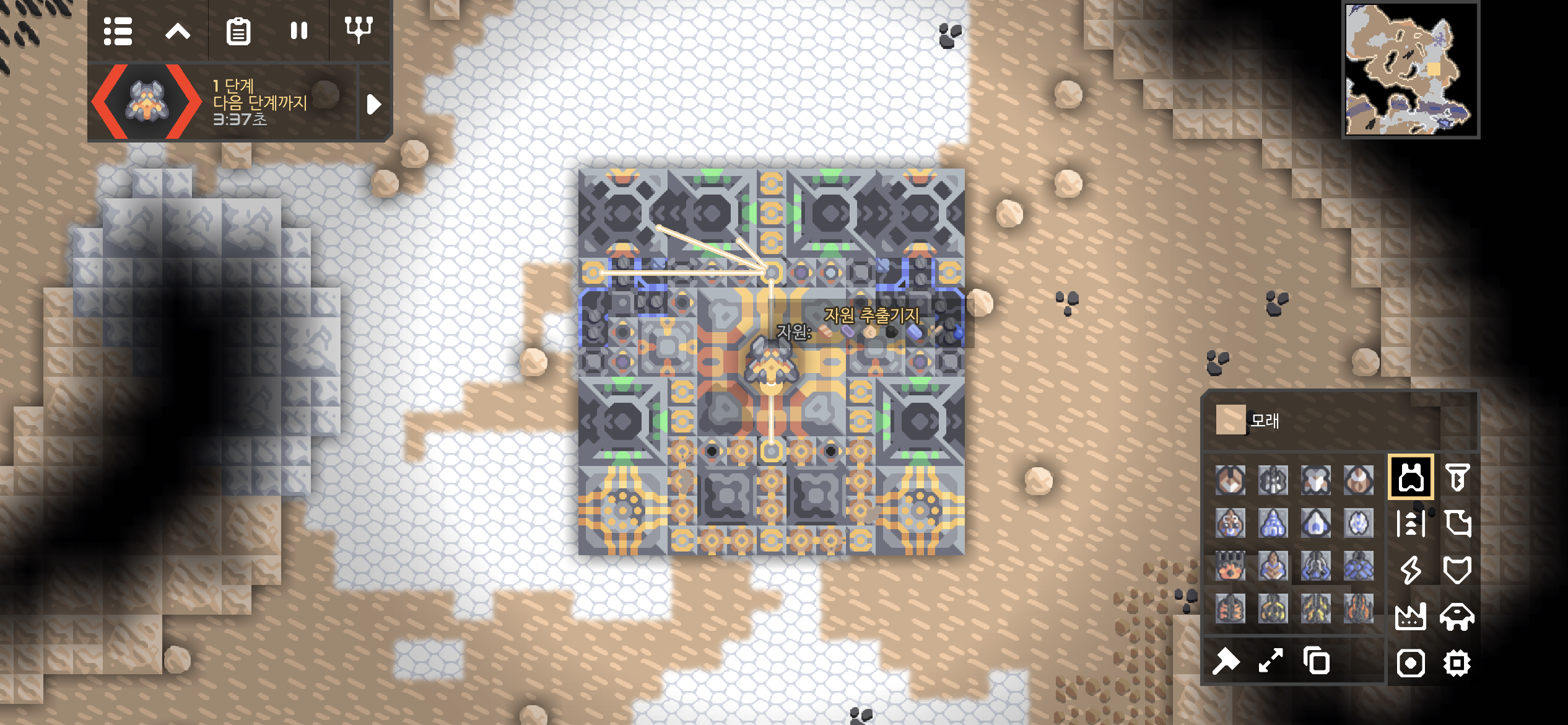 자원 추출기지의 미니맵도 아군의 건물로 가득차게 되었습니다.
