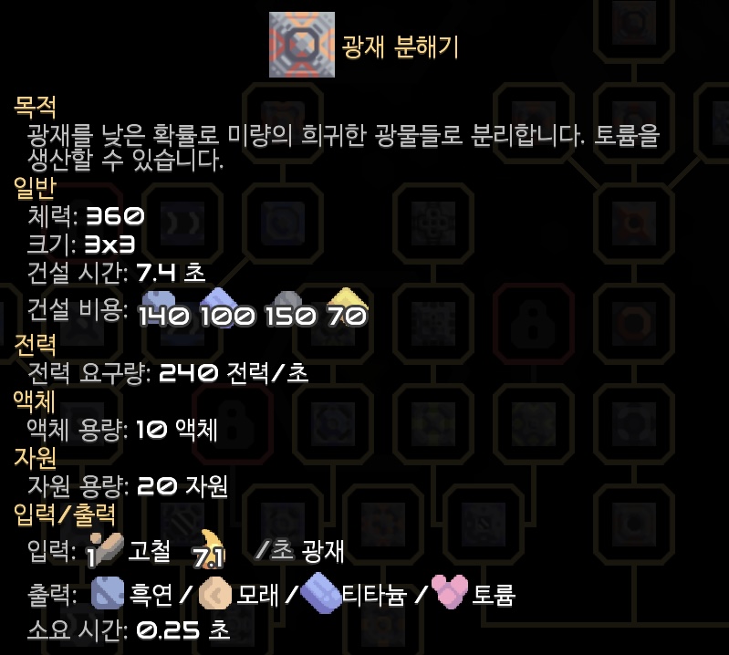 자원 추출기지에 토륨이 없기도 하고, 지역 구석에 고철 더미가 있어서 이전에 연구한 광재 분해기도 건설해봤습니다. 고철로 토륨을 만드는건 정말 연금술인듯..
