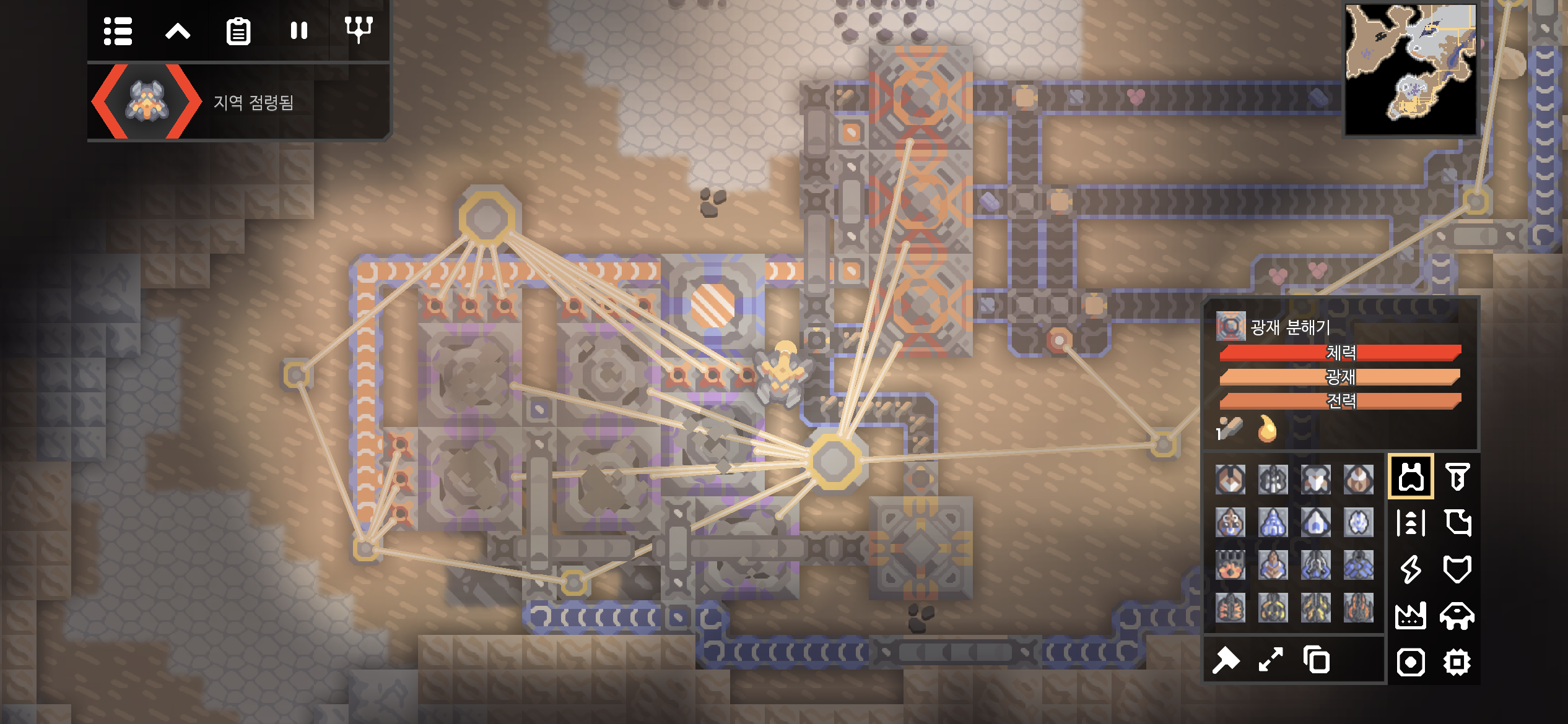 자원 추출기지의 미니맵도 아군의 건물로 가득차게 되었습니다.