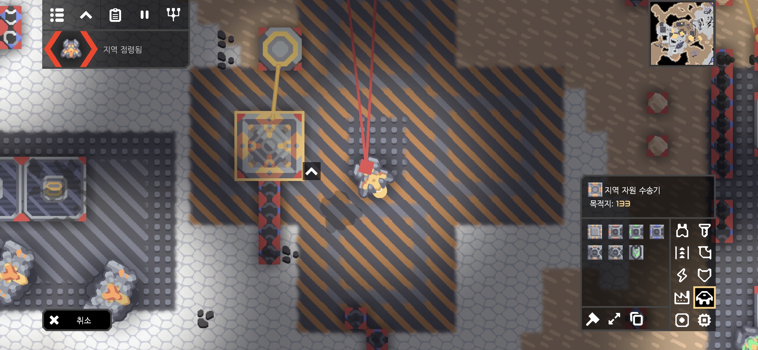 묵묵히 맞기만 하던 적 코어는 쉽게 파괴됩니다. 자원 추출기지 지역 점령 성공!