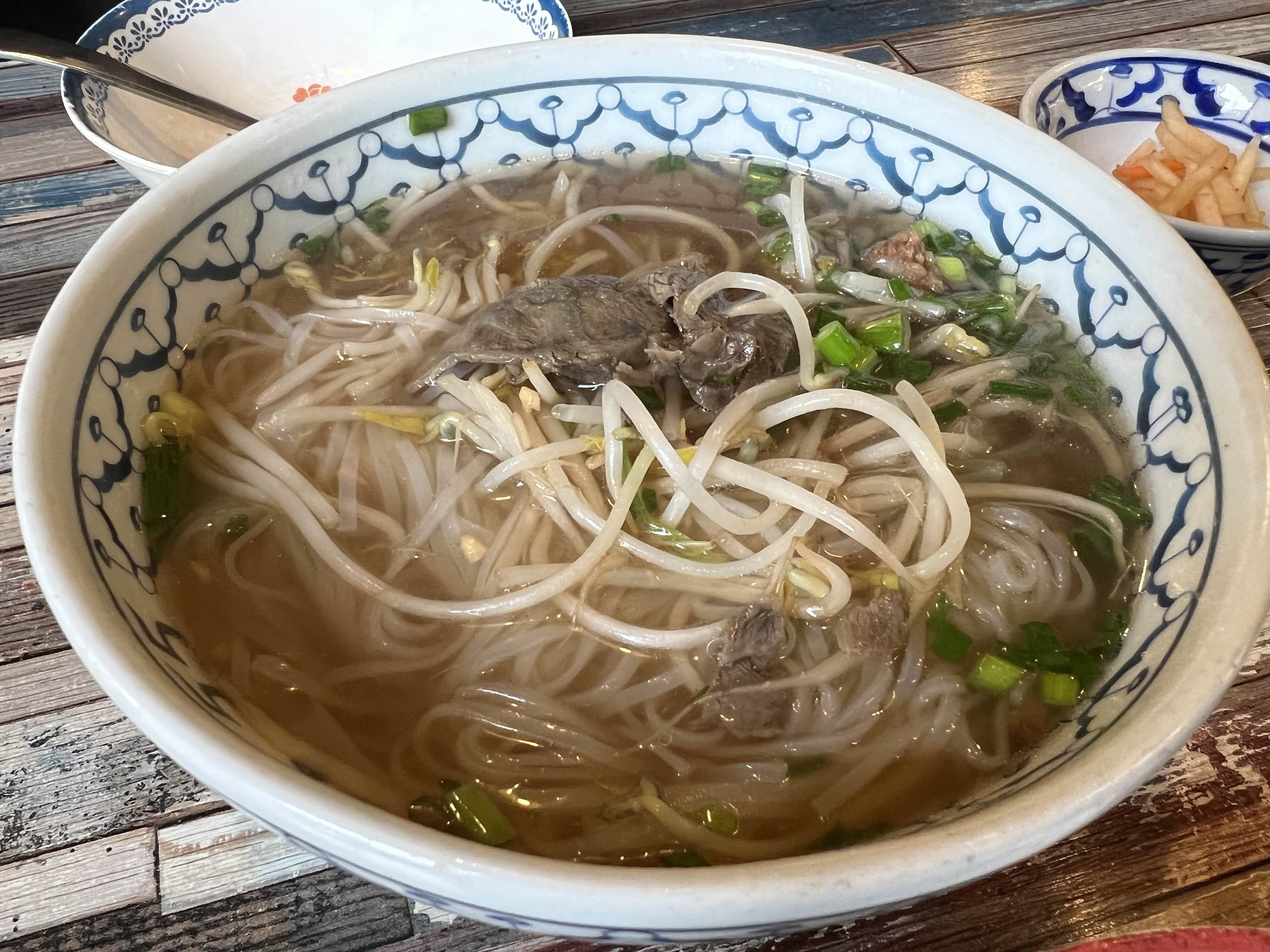 그리고 주문한 태국 쌀국수가 나왔습니다. 저는 고수를 싫어하는 하수입니다. 고수의 맛이 느껴지지 않아 다행이었습니다. 고수를 좋아하시는 분들은 별도로 요청하시면 됩니다. 태국 쌀국수지만 완전 Korean patch된 쌀국수라 아주 맛있습니다. 육수와 면이 끝내줍니다. 해장용으로도 아주아주 좋을것 같네요. 면과 육수가 술술 넘어갑니다.