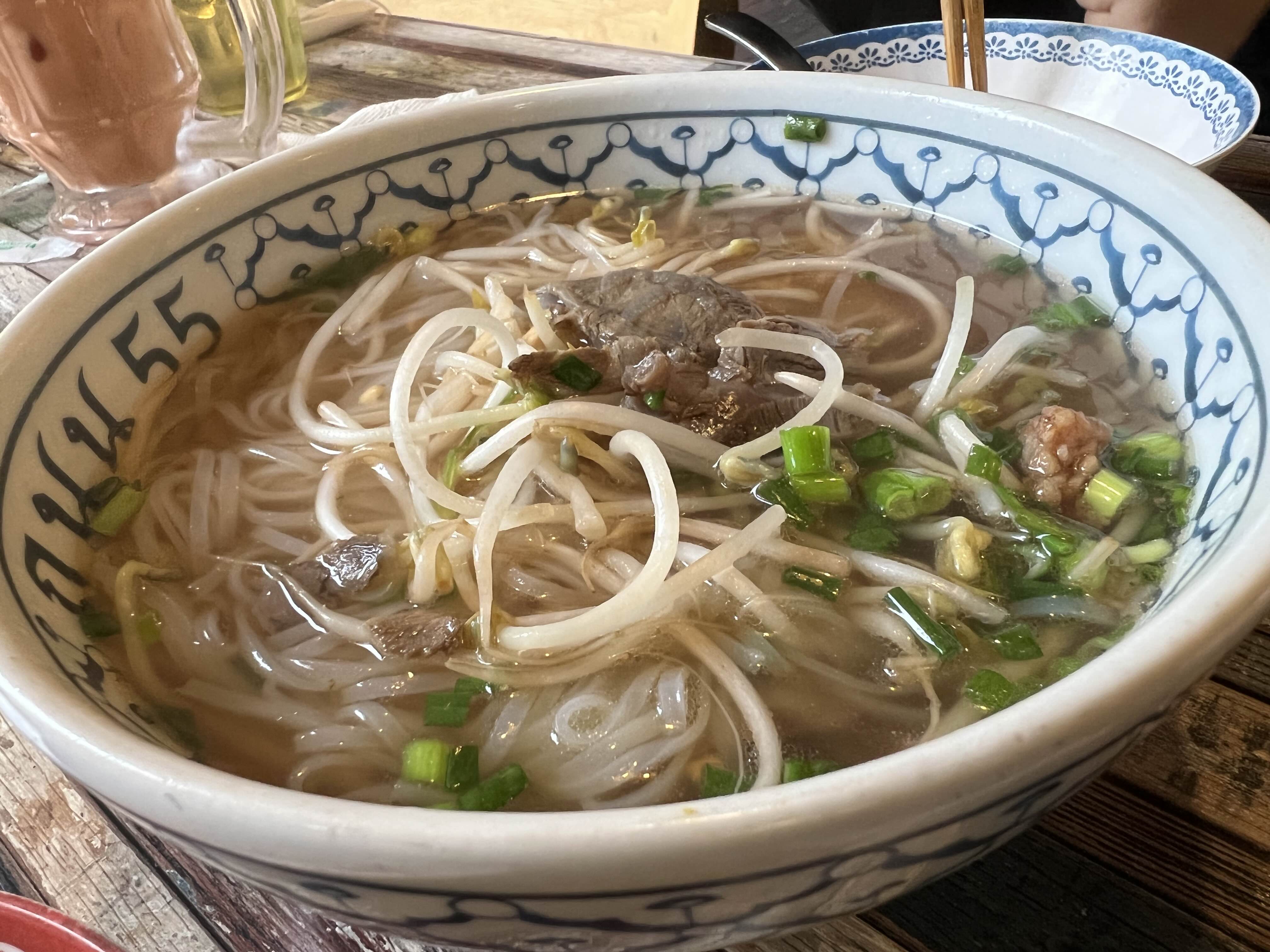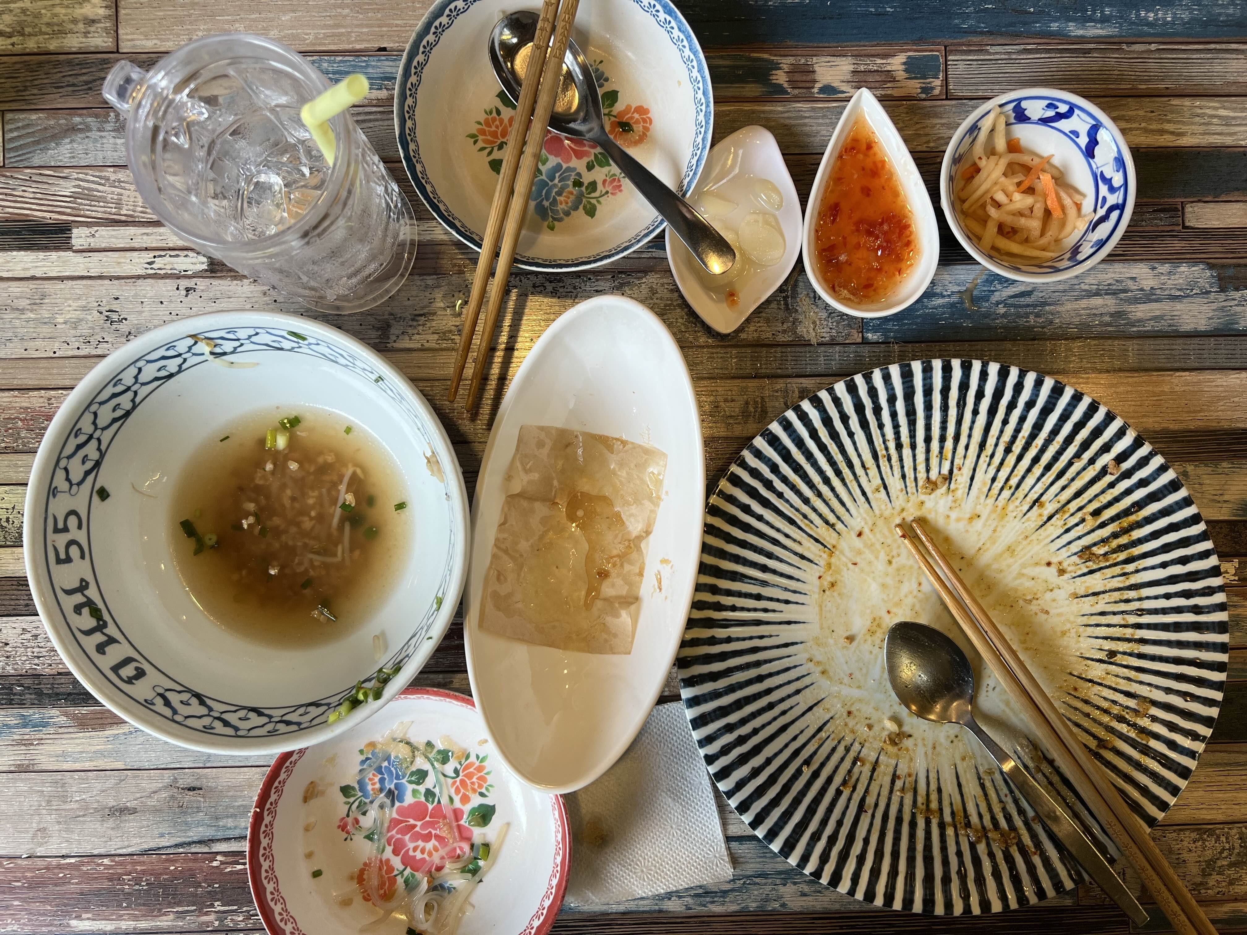 그리고 주문한 태국 쌀국수가 나왔습니다. 저는 고수를 싫어하는 하수입니다. 고수의 맛이 느껴지지 않아 다행이었습니다. 고수를 좋아하시는 분들은 별도로 요청하시면 됩니다. 태국 쌀국수지만 완전 Korean patch된 쌀국수라 아주 맛있습니다. 육수와 면이 끝내줍니다. 해장용으로도 아주아주 좋을것 같네요. 면과 육수가 술술 넘어갑니다.