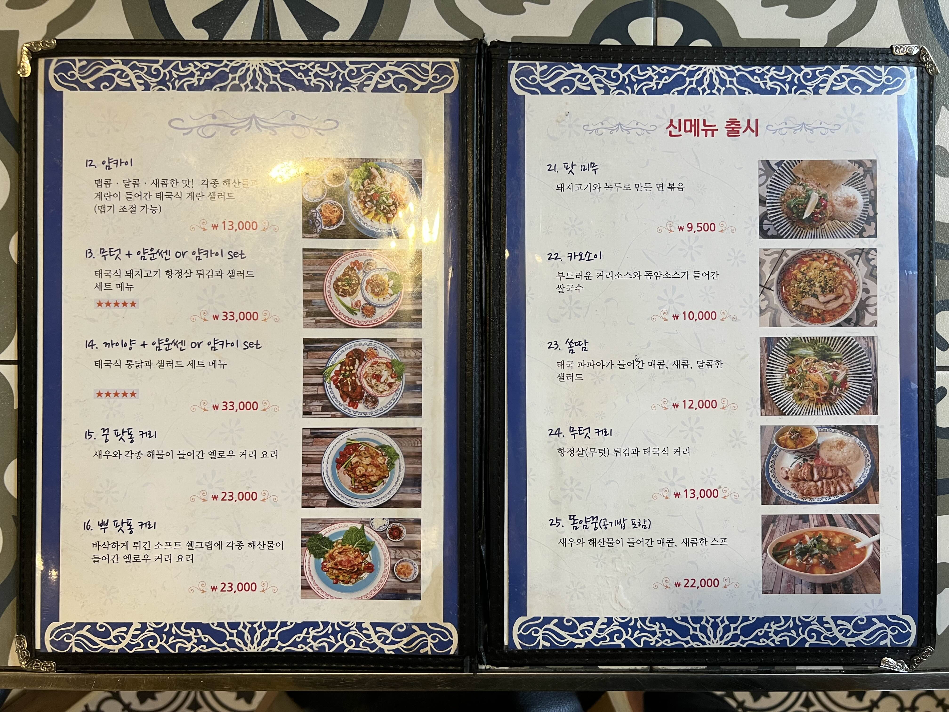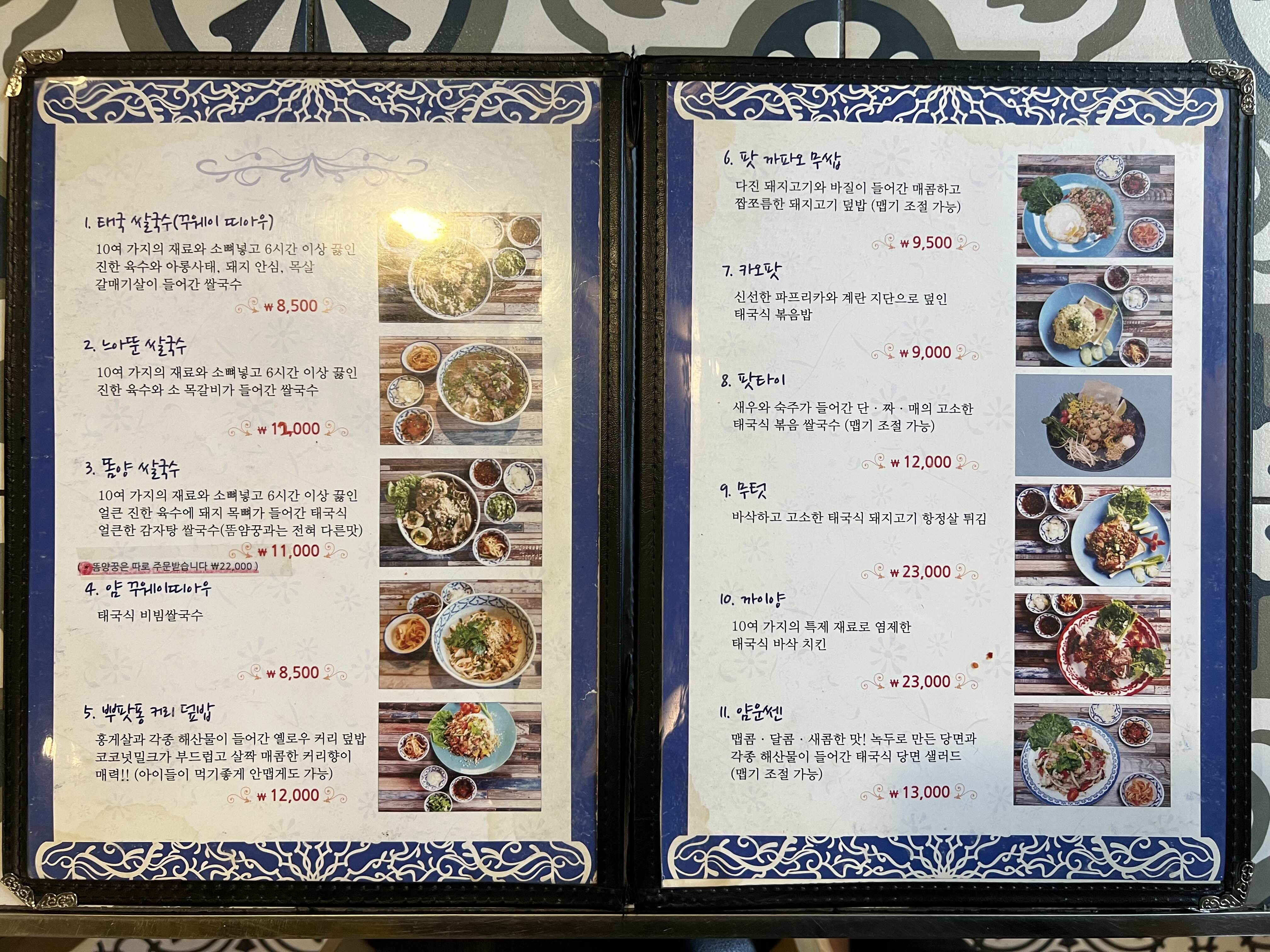 타논55 광진구의점 메뉴판. 이국적이면서도 동시에 한국적인 느낌이 물씬 나는 메뉴들 입니다. 태국이 우리와 머지 않은 나라라 식생활이 상당히 비슷한듯?