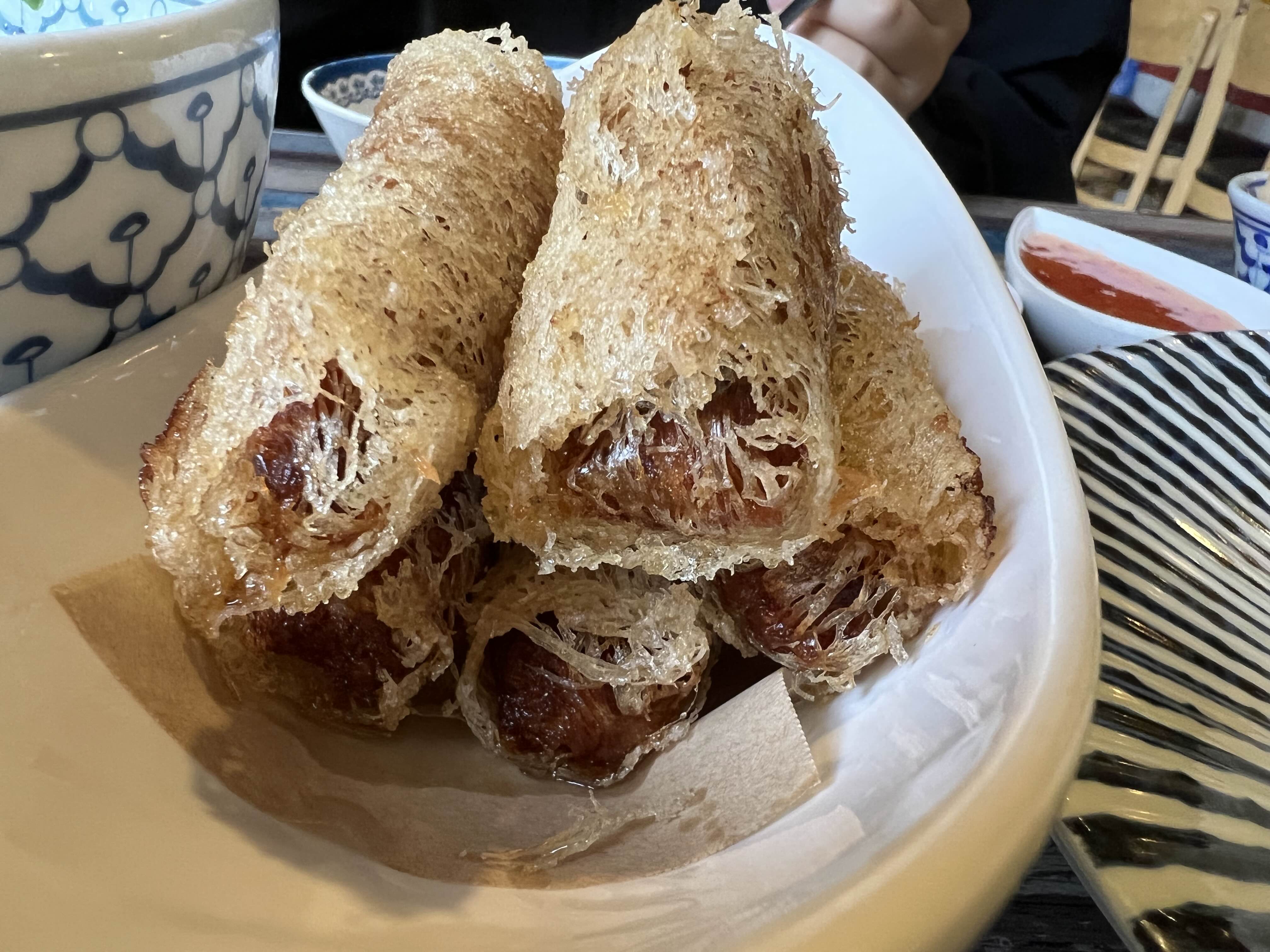 건강검진 받으라 비어버린 속에 기름칠도 해야겠지요? 함께 주문한 스프링롤입니다. 새우와 게살이 기름지게 잘 어울립니다. 함께 제공되는 소스와 완전 잘 어울립니다.