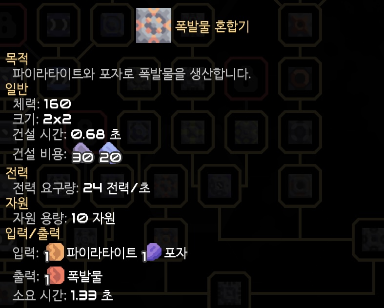 폭발물 혼합기는 폭발물을 생산하는데, 생산이 까다로운 파이라트이트와 포자를 재료로 사용합니다.