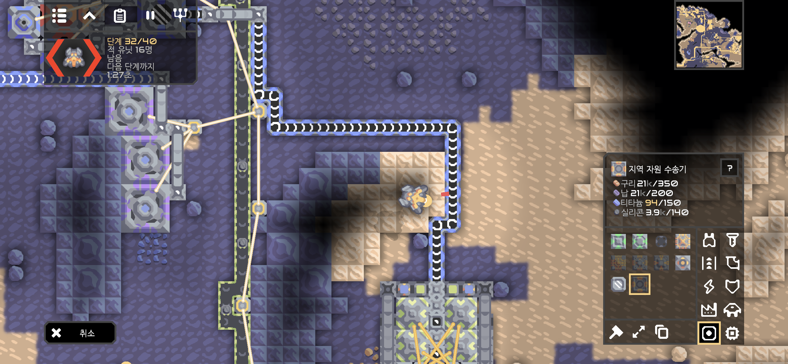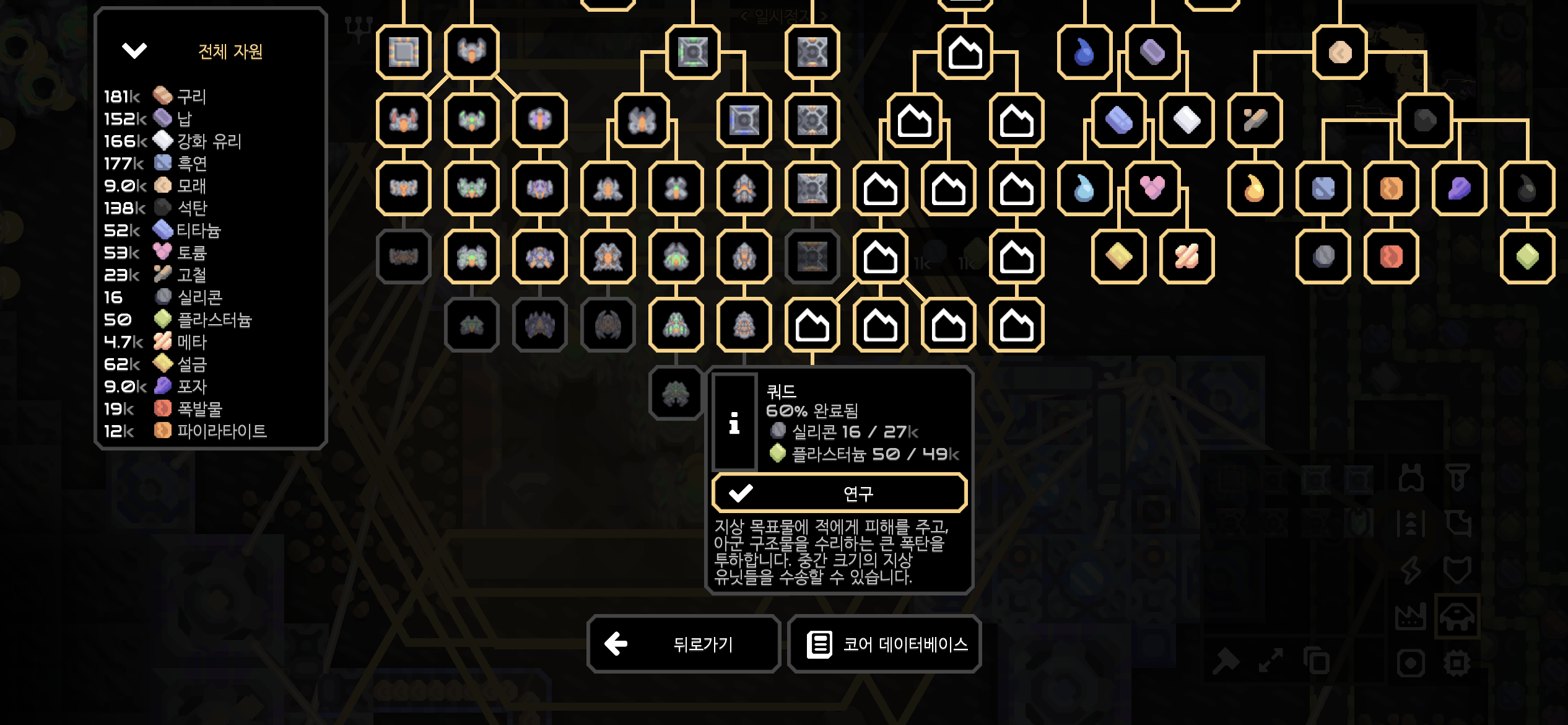 석유 웅덩이를 개발해 플라스터늄 공장을 만들던 도중 티타늄에 노란불이 들어왔네요.