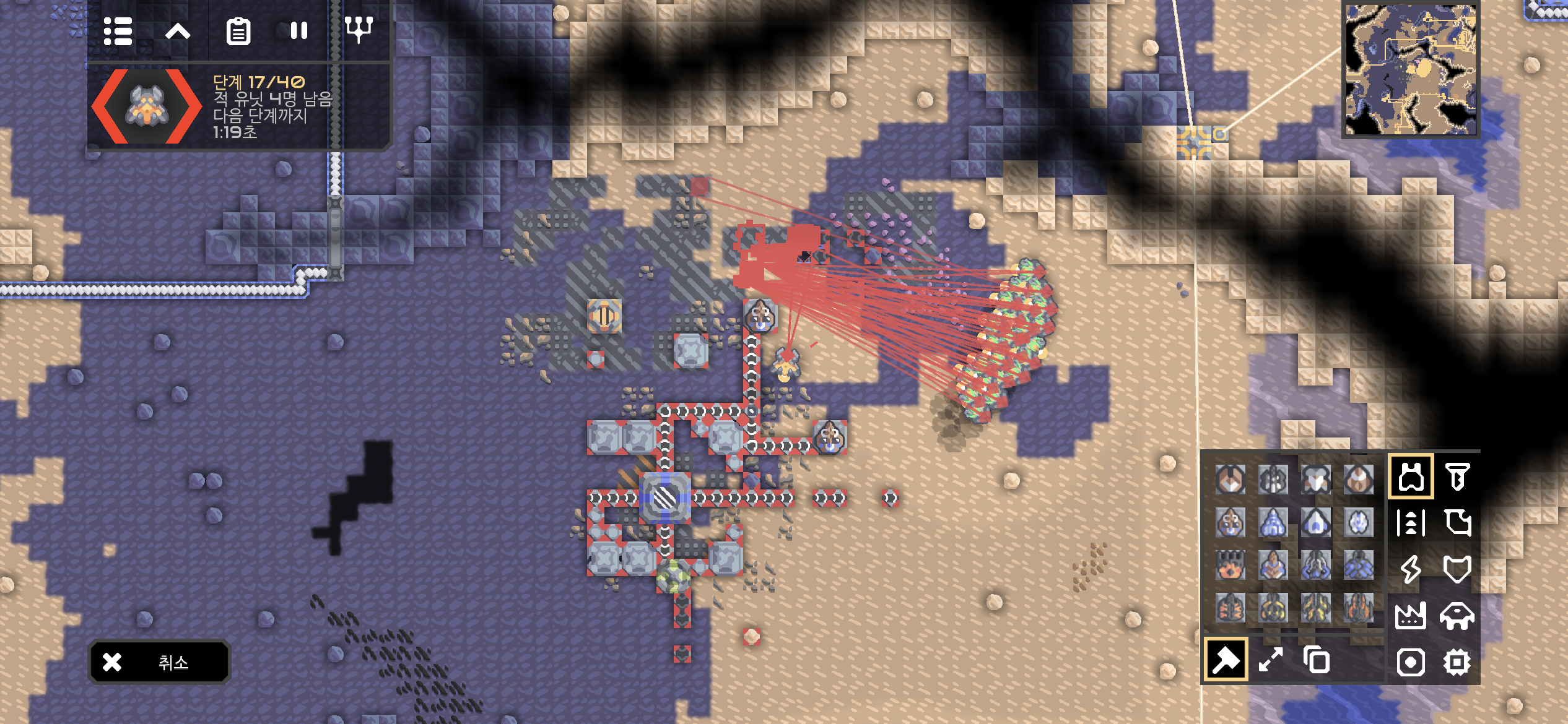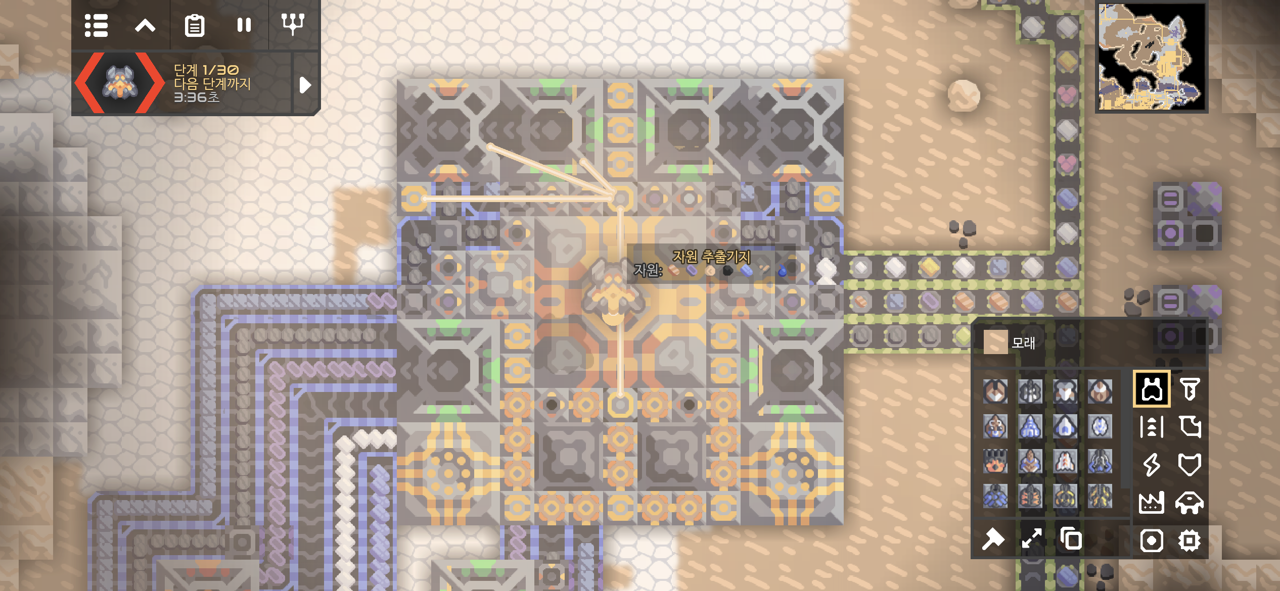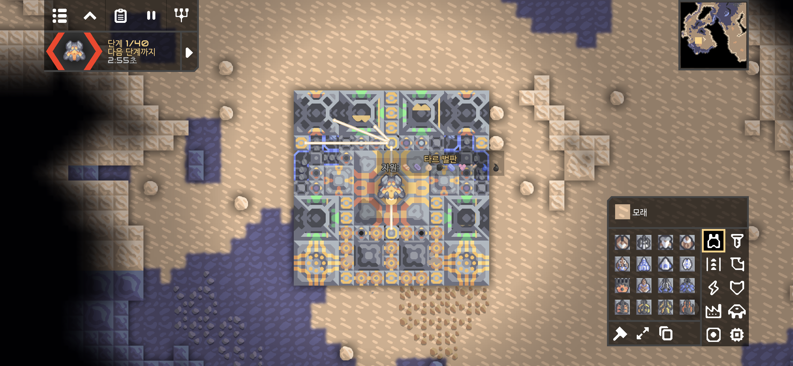 타르 벌판의 미니맵이 아군의 시설들로 가득 찼네요.