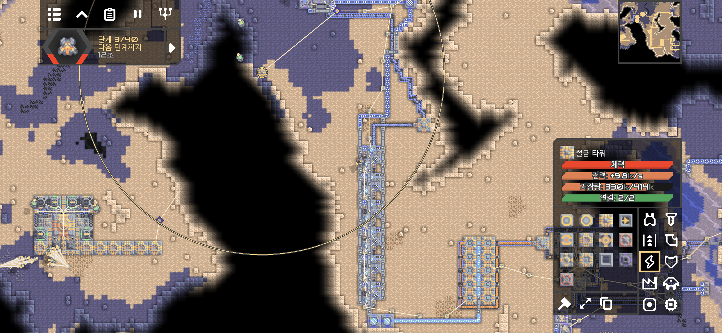 설금 타워를 적절한 위치로 옮겨 배치하는 동안 전력이 +9.8k/s까지 상승하며 안정되었습니다.