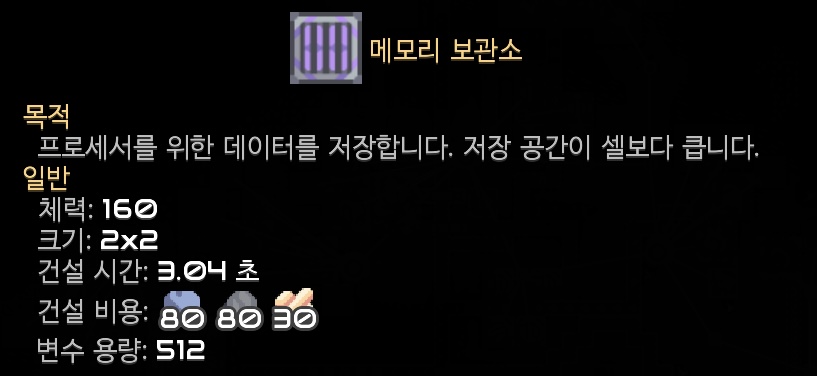 다른 유저의 프로세서를 설계도를 가져와서 사용하는 저의 입장에선, 메모리 보관소은 그닥 쓸모있진 않아보이네요.