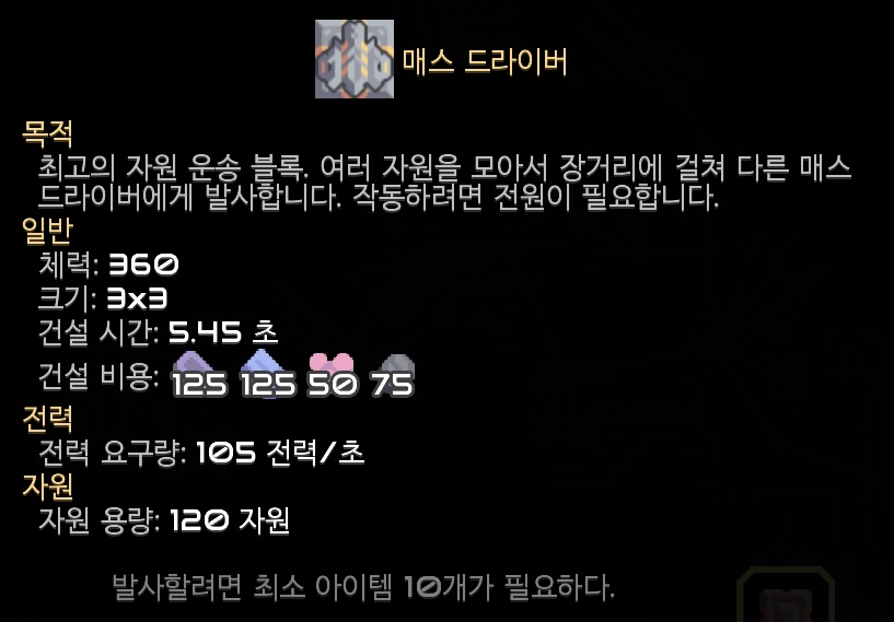 최고의 자원 운송 블록이라는 매스 드라이버! 자원을 로켓에 담아서 ‘진짜’ 로켓 배송을 하나봅니다.